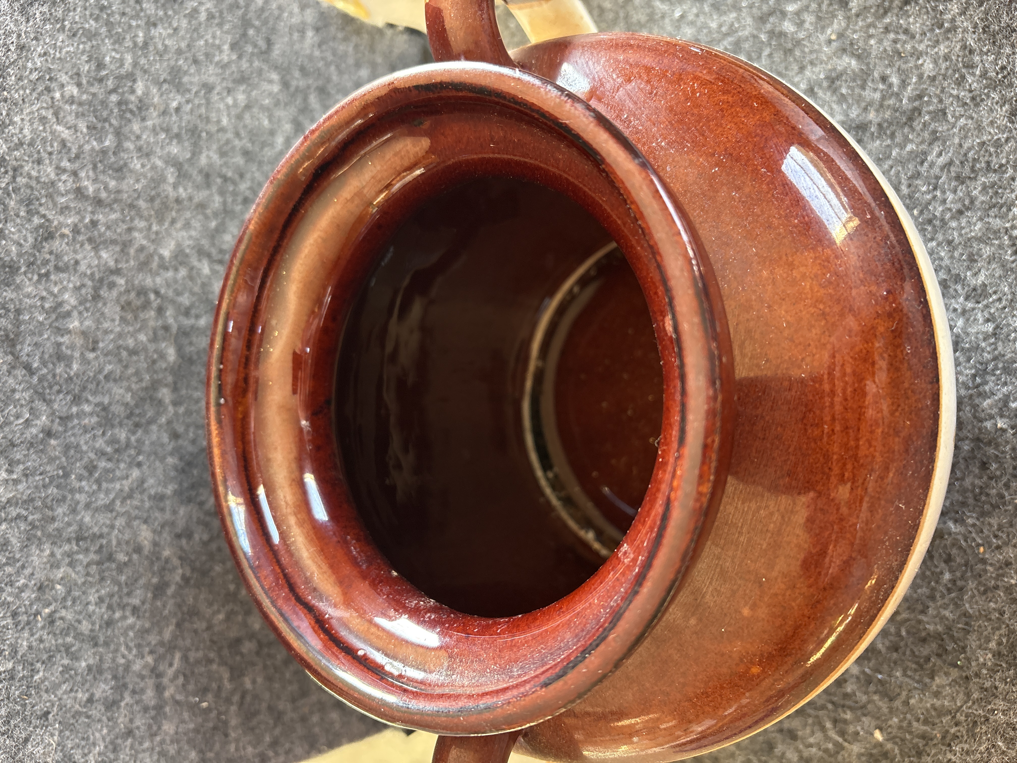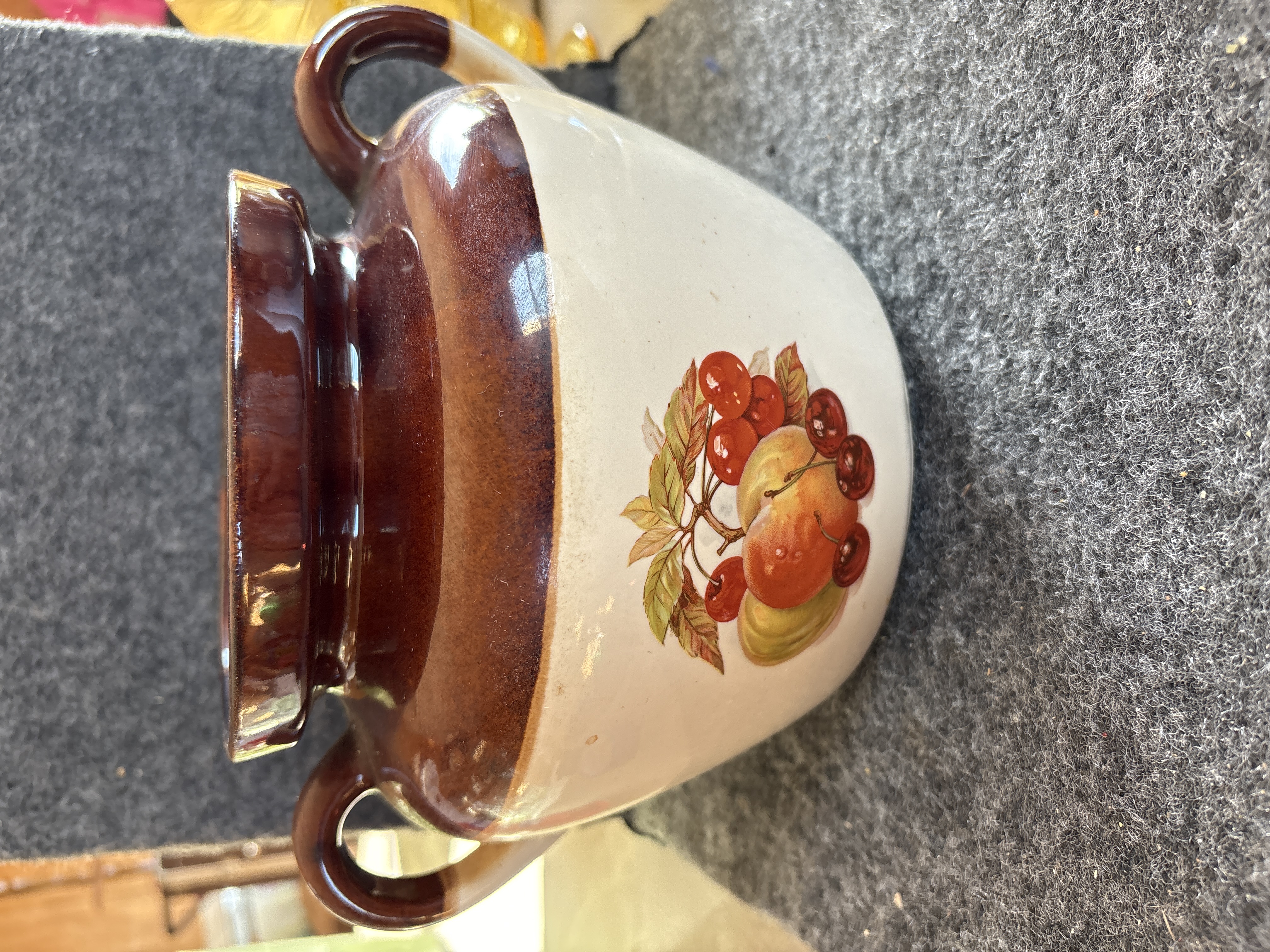 McCoy Pottery Model 342 Two-Tone Fruit Motif Bean Pot