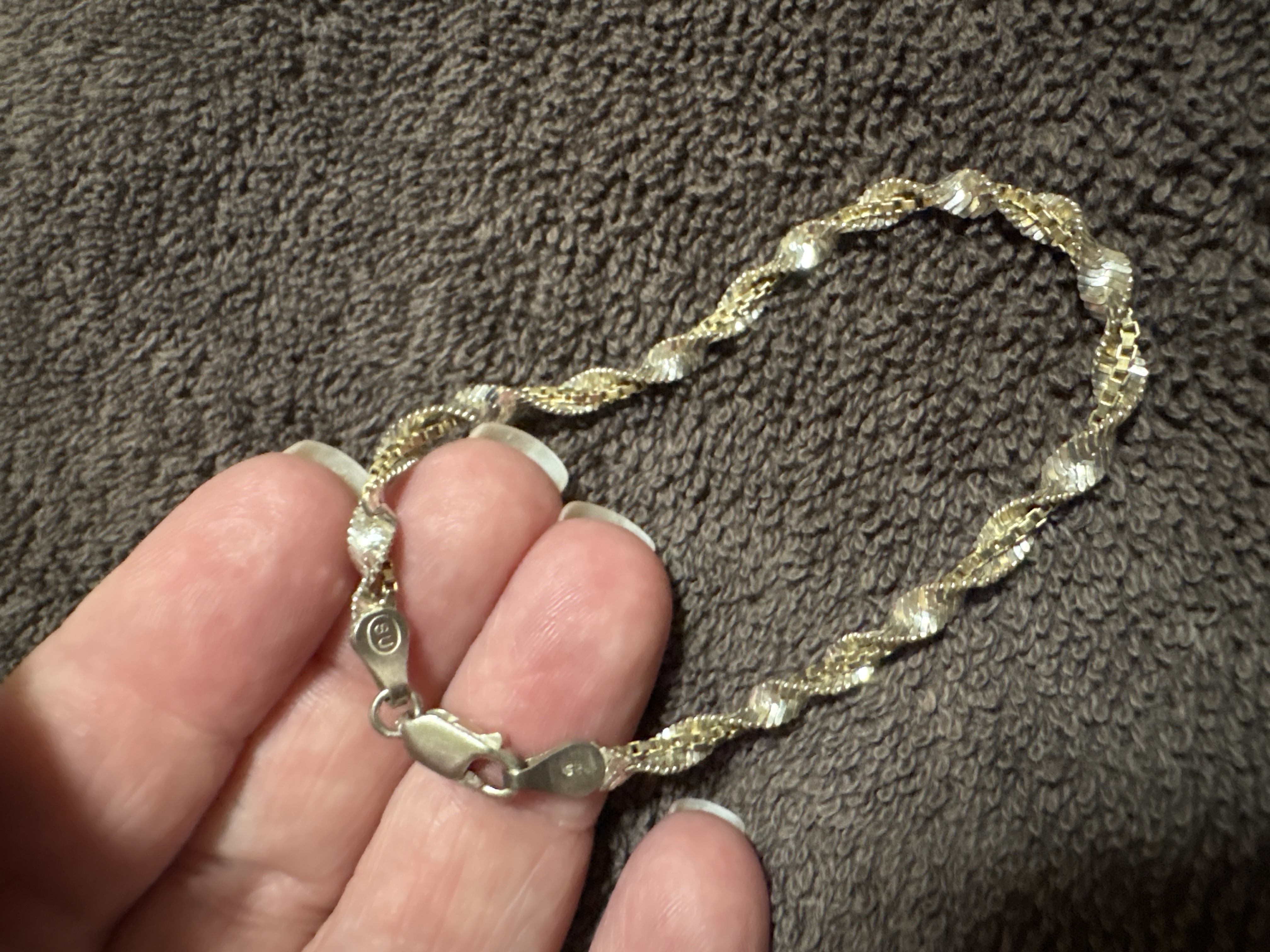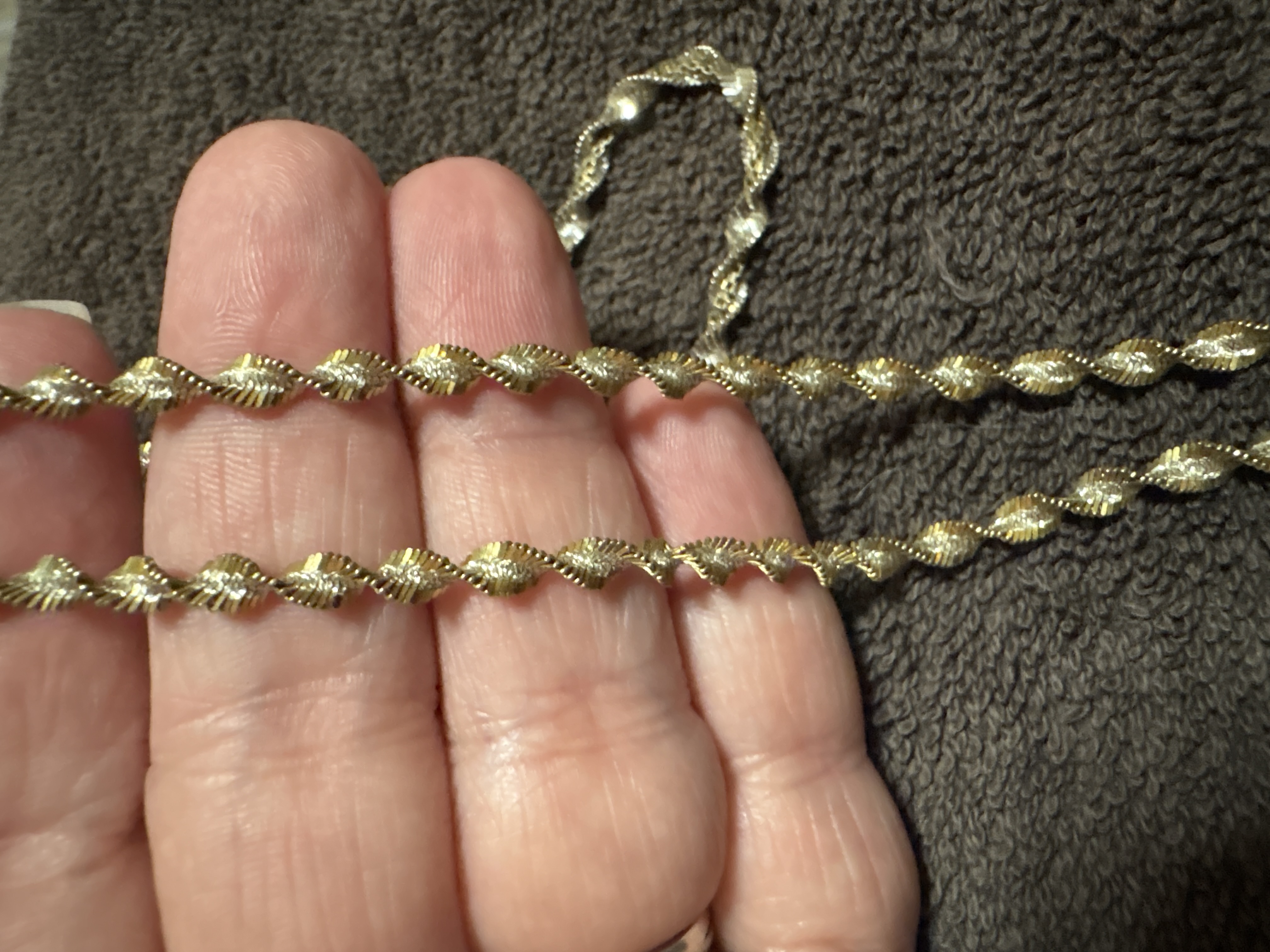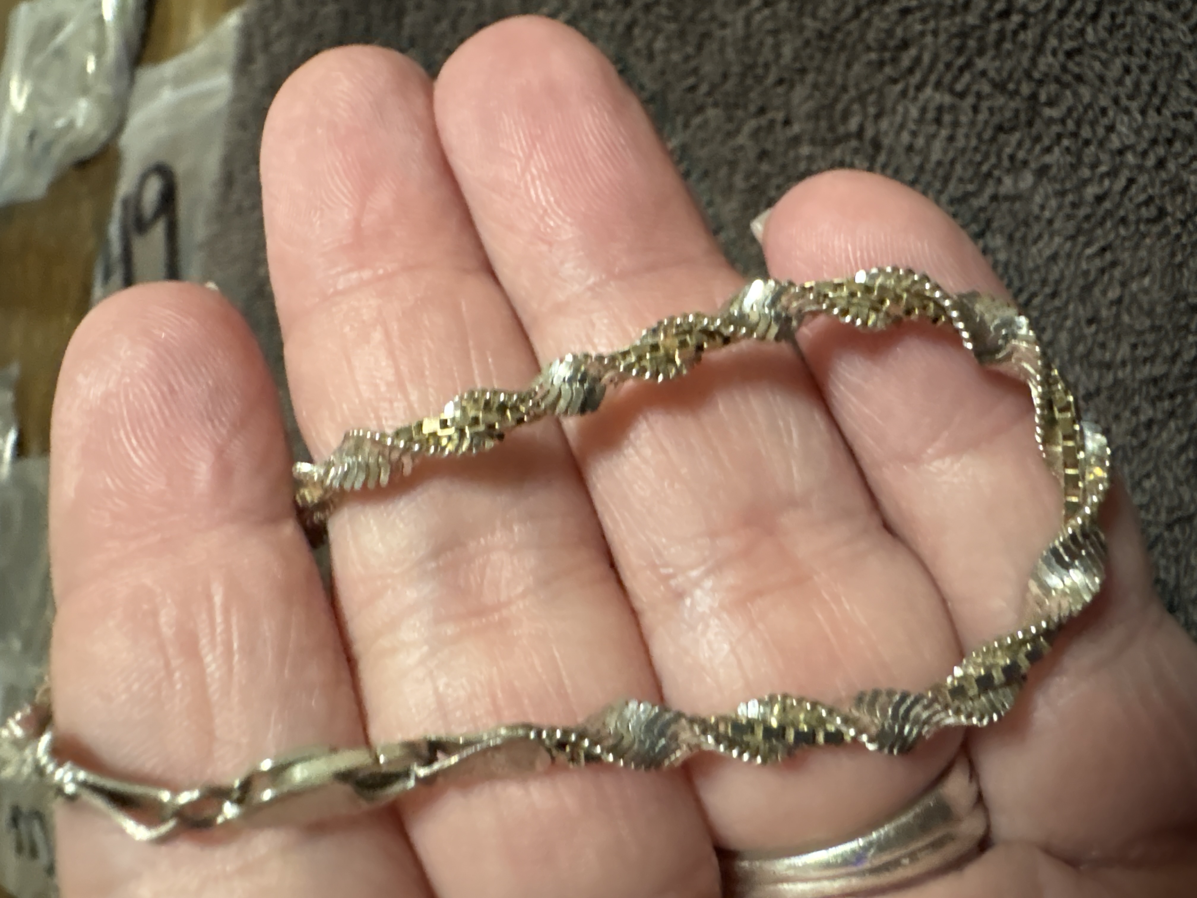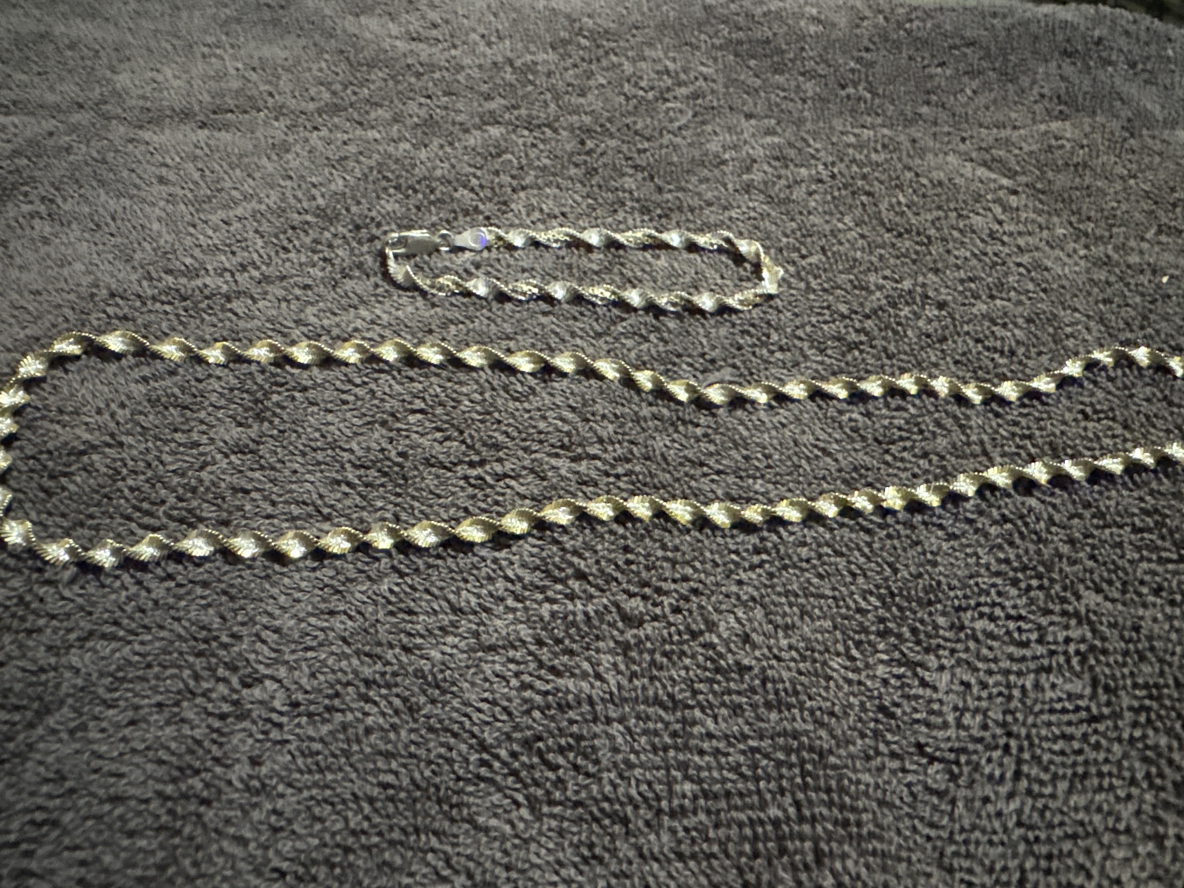 A Pair of Two-Tone Sterling Silver Twisted Ribbon-Link Necklace and Bracelet