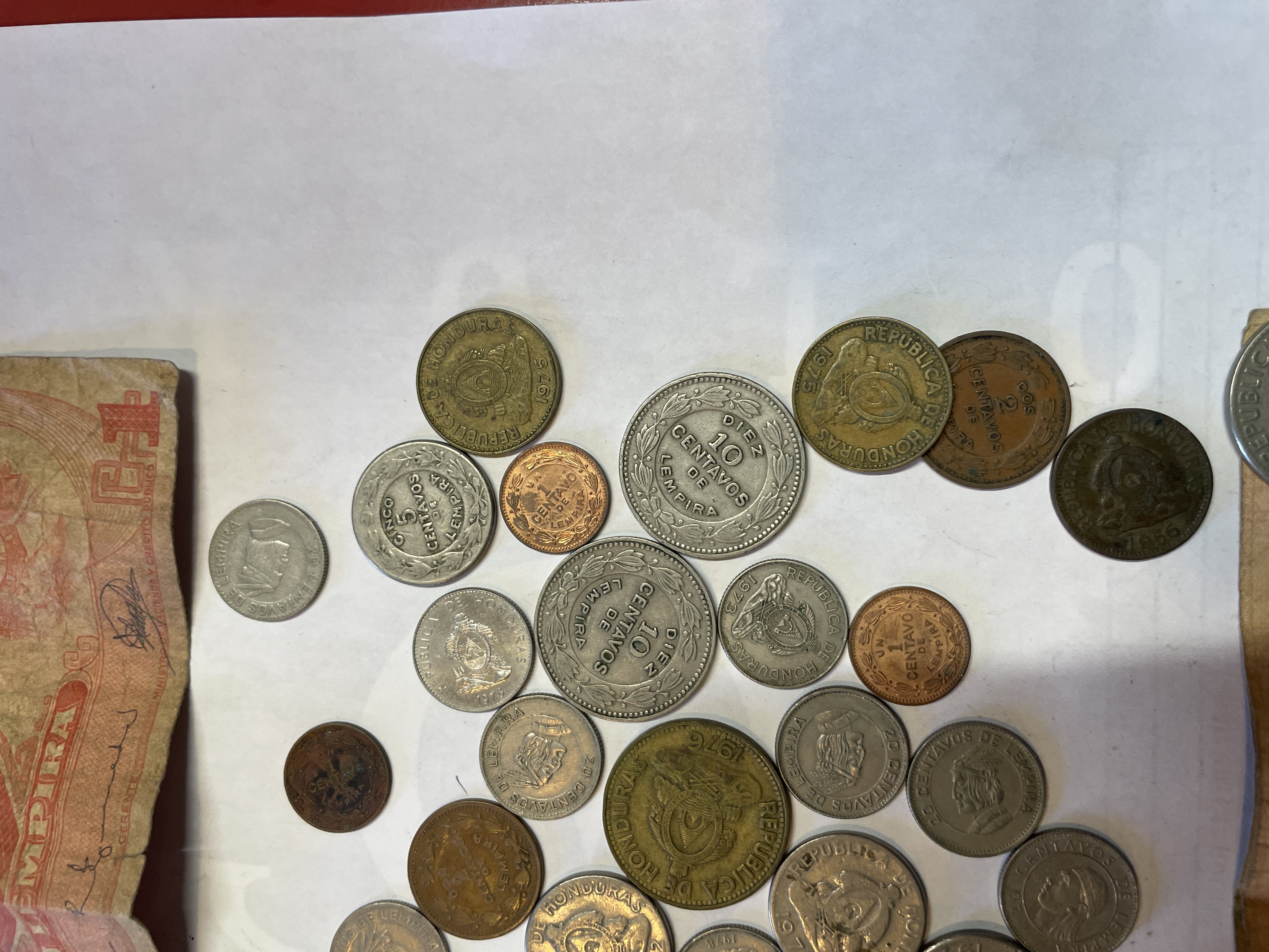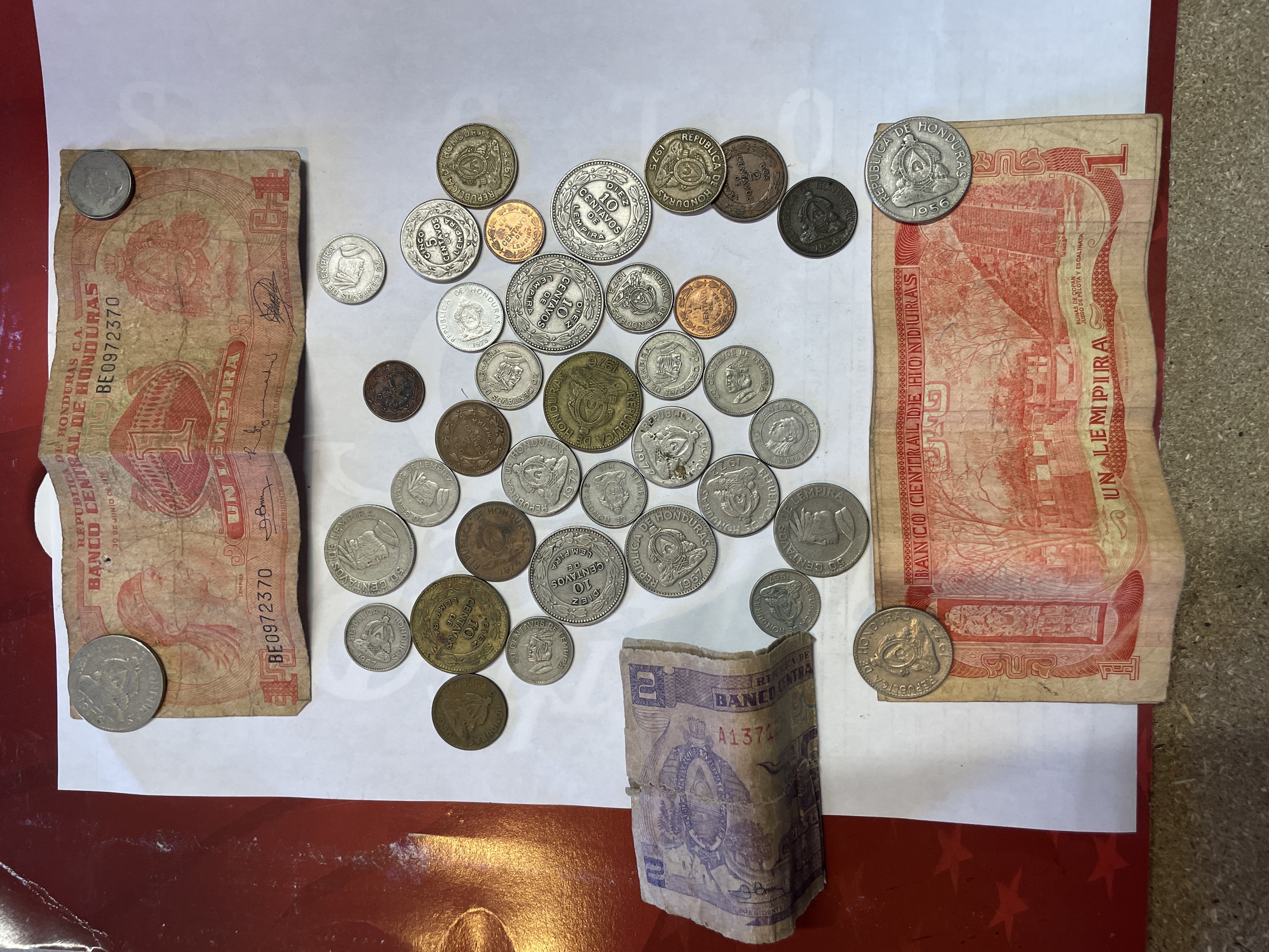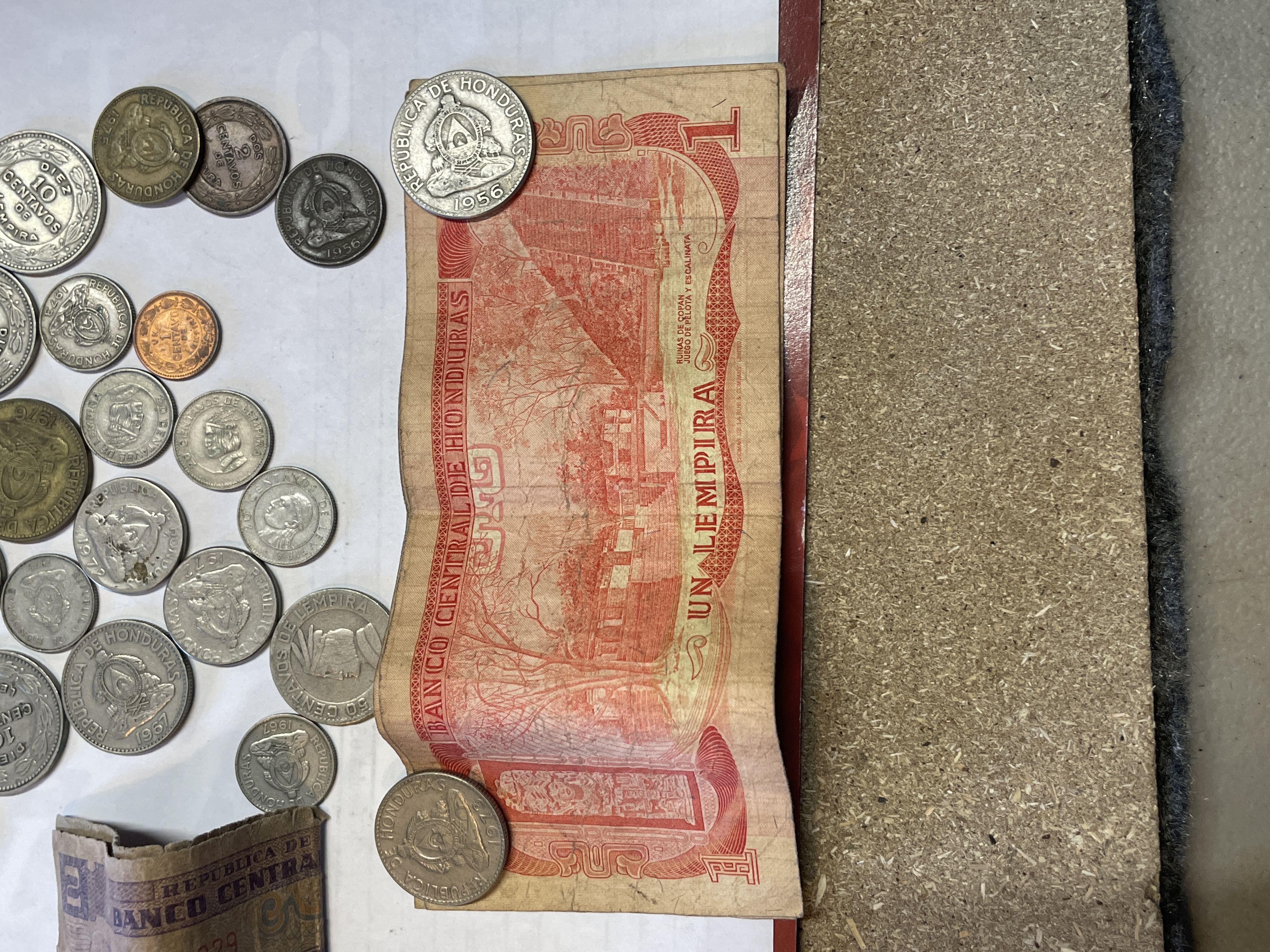 A collection of Republic of Honduras currency featuring 1 and 2 Lempira banknotes alongside various centavo coins in denominations of 1, 2, 5, 10, 20, and 50.