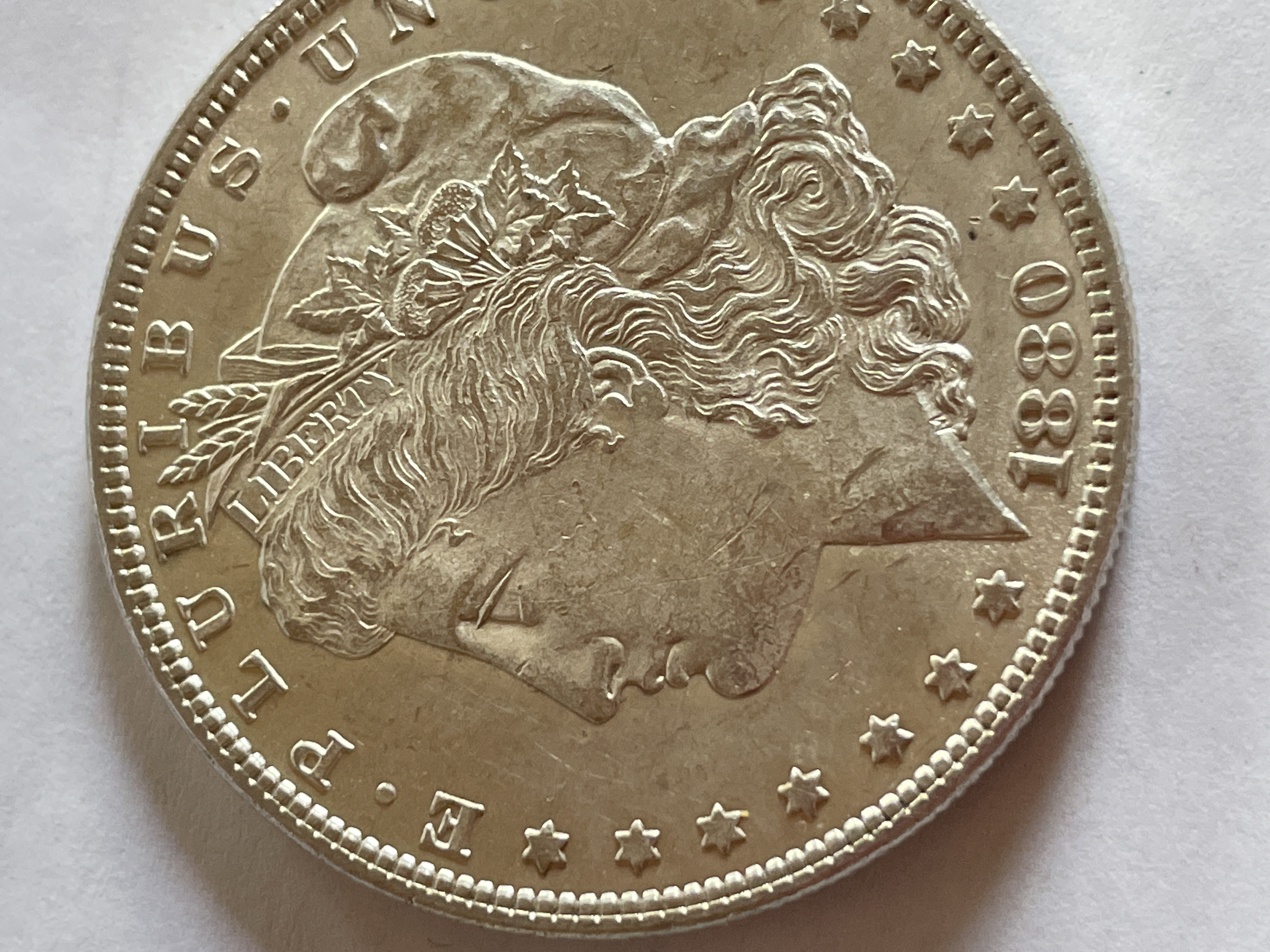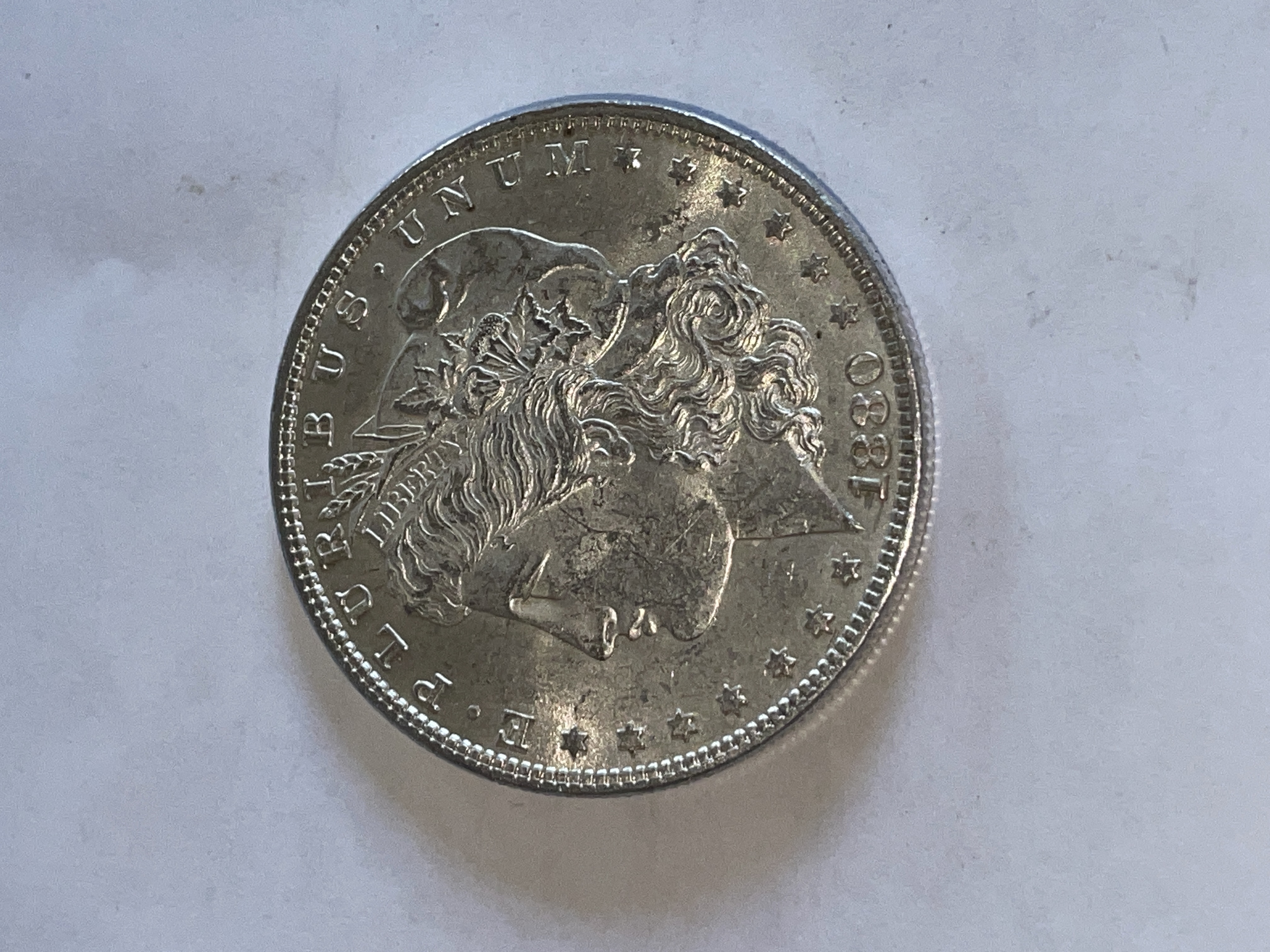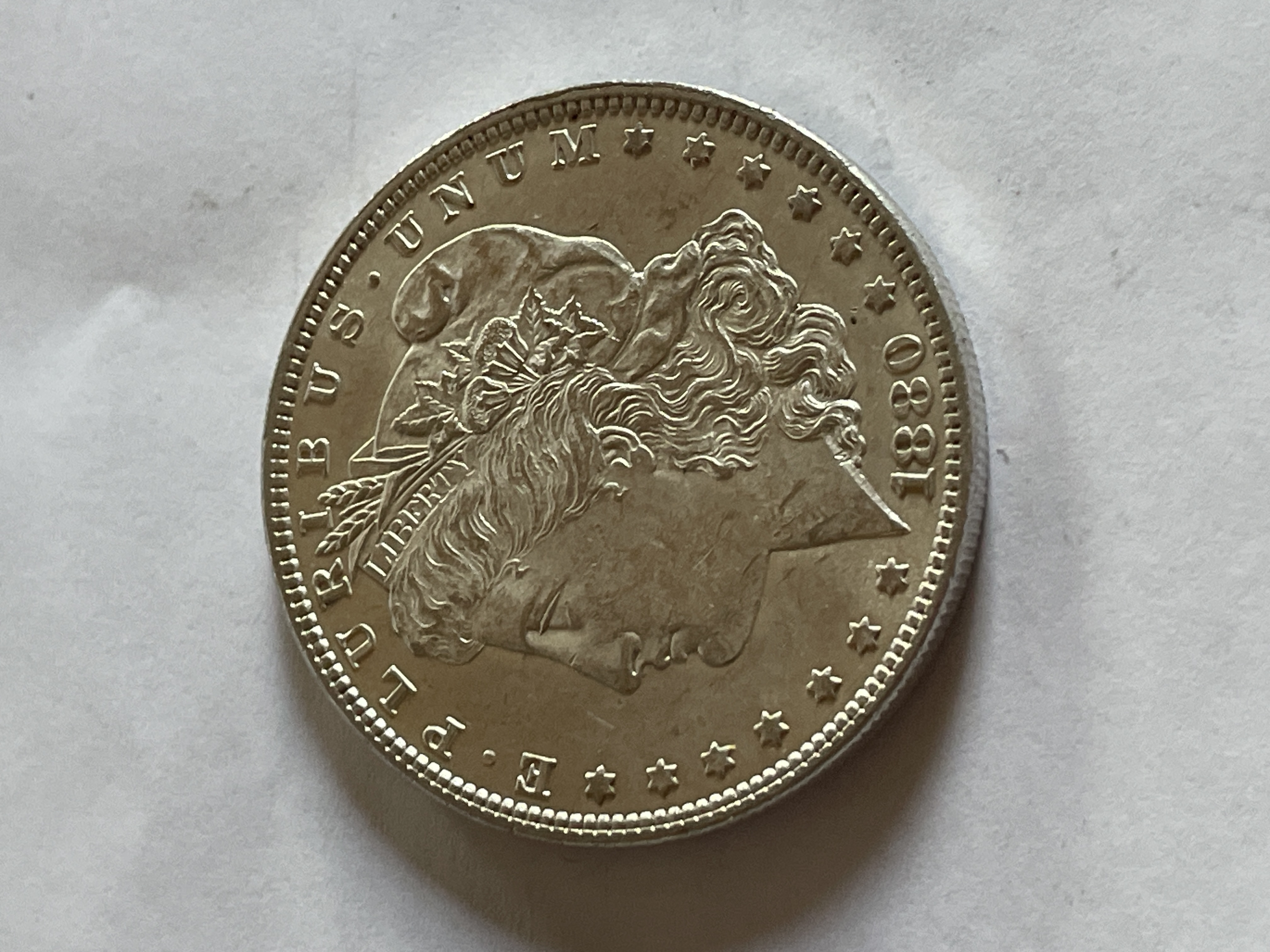 1880 P morgan silver dollar see pictures for condition nice almost frosty