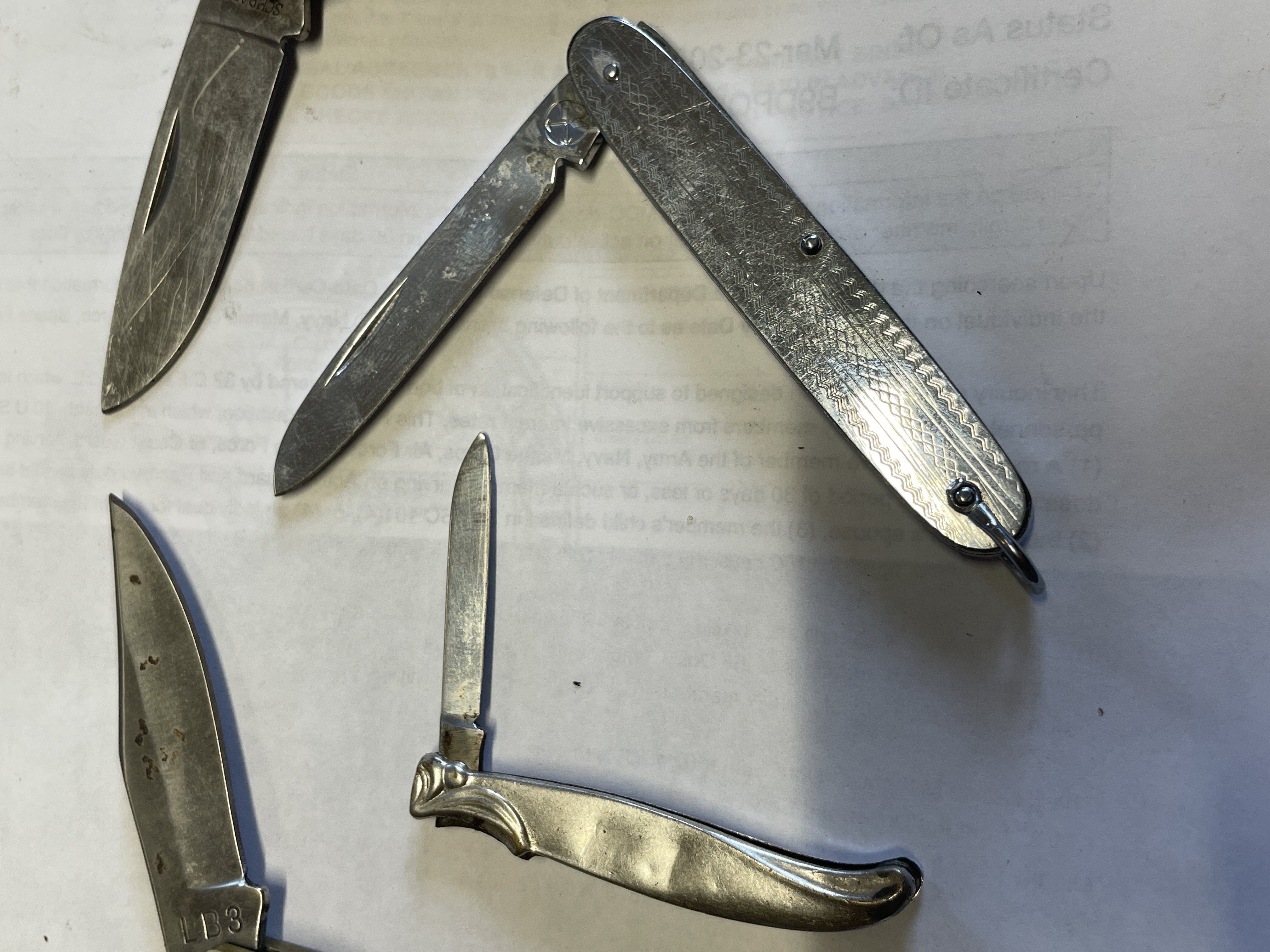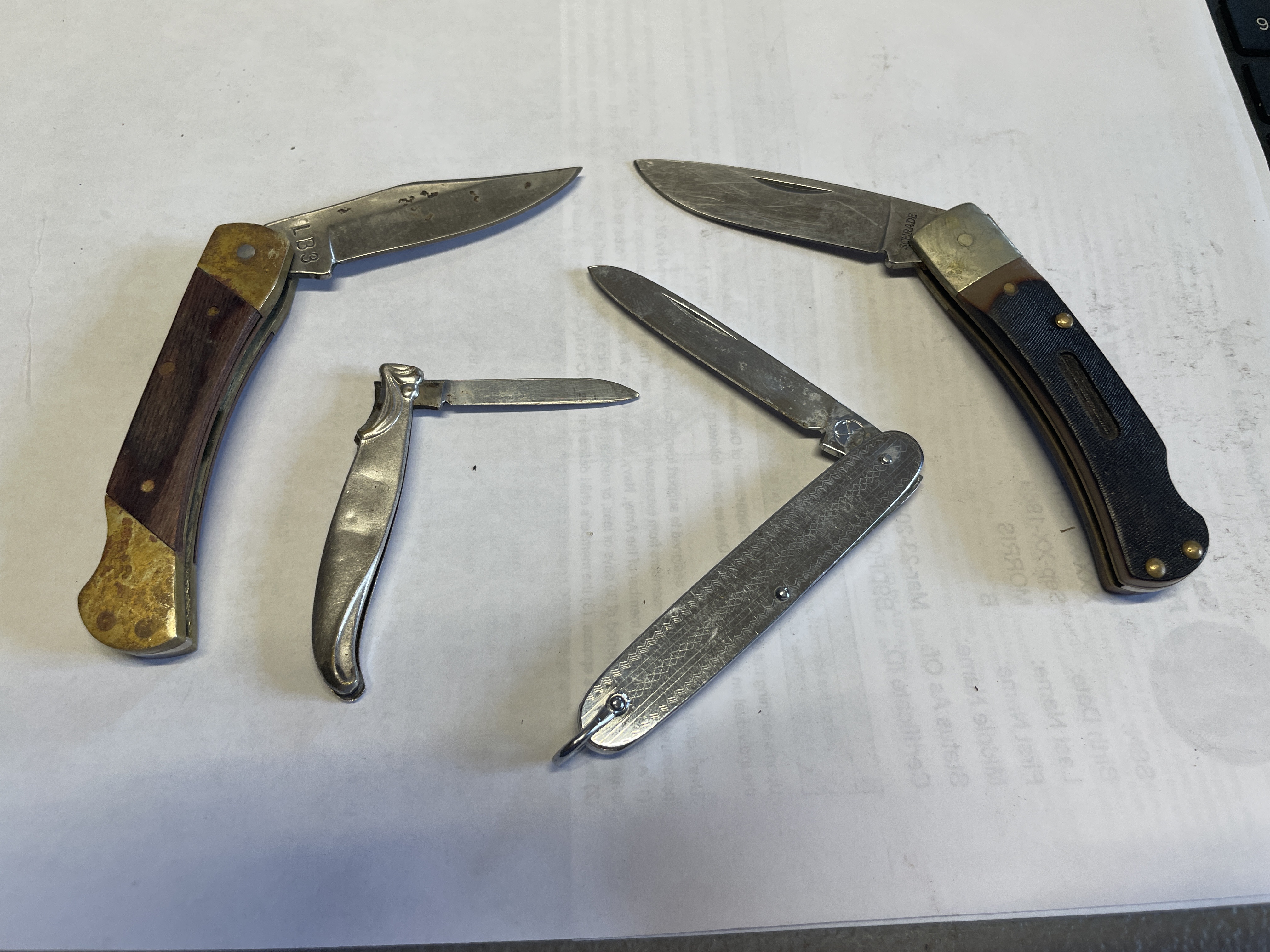 PIN KNIVES, UNCLE HENRY LB3 UNSHARPEND, SCHRADE 3OT, 4 TOTAL SEE PICTURES FOR DETAILS