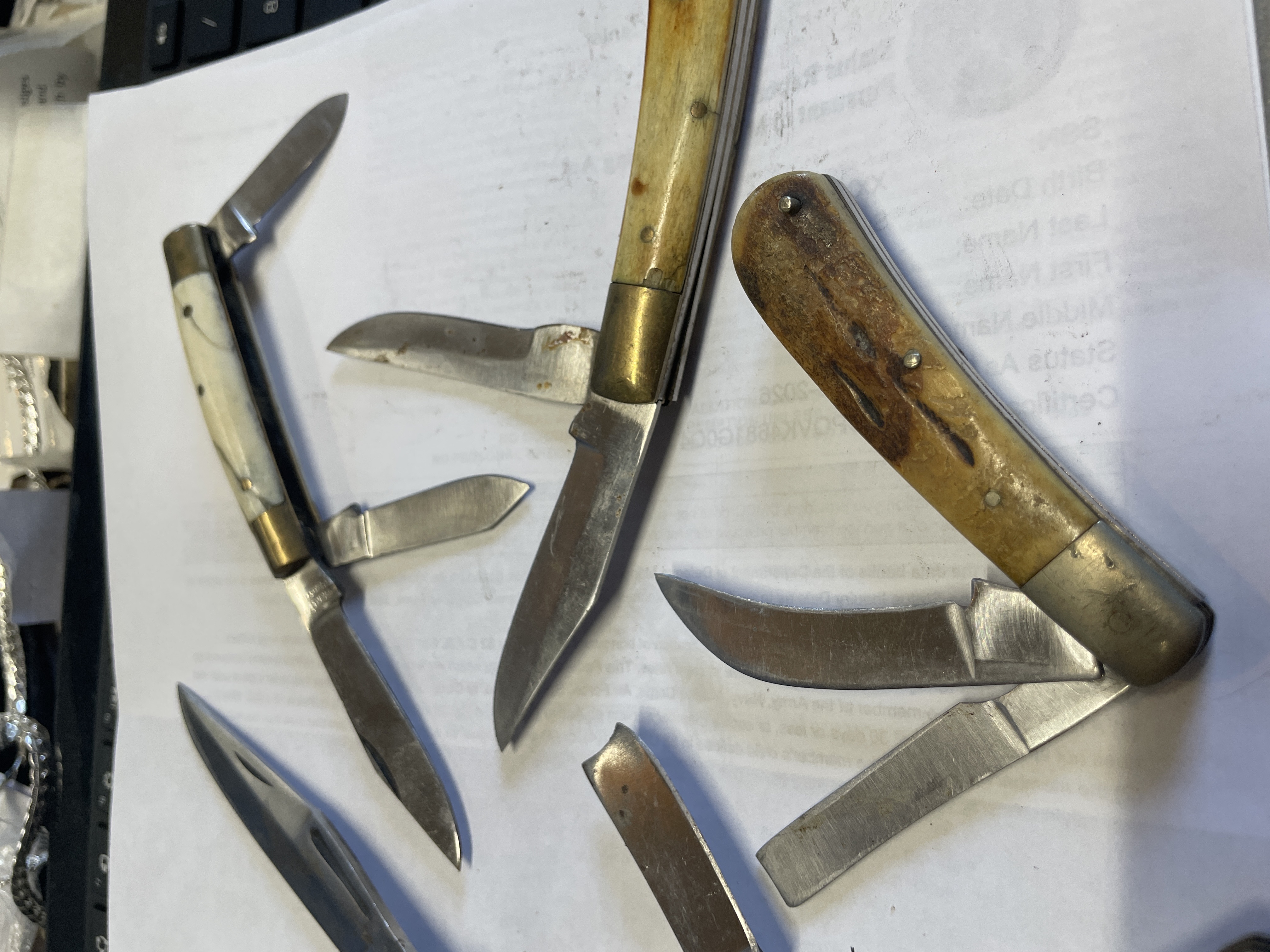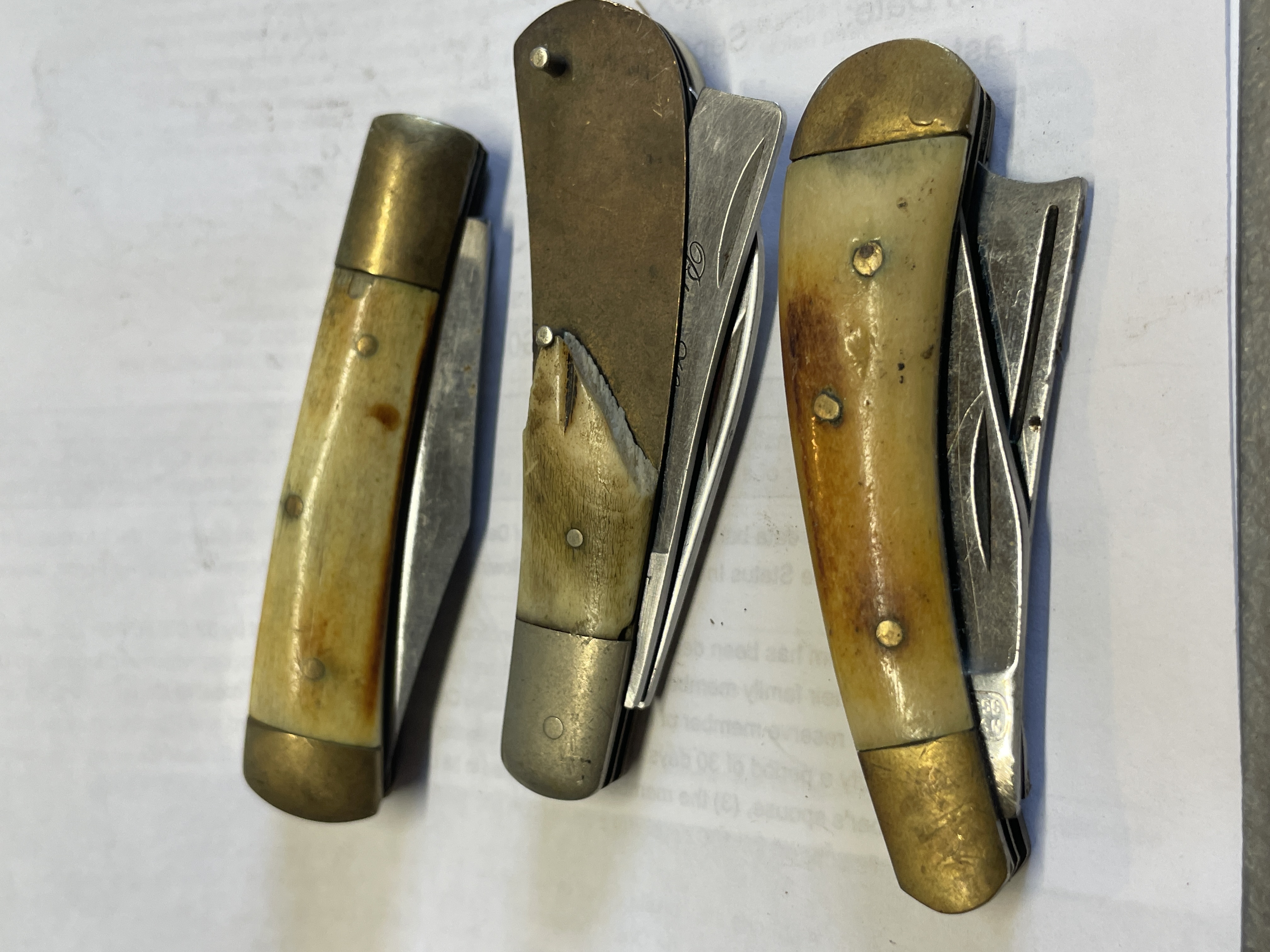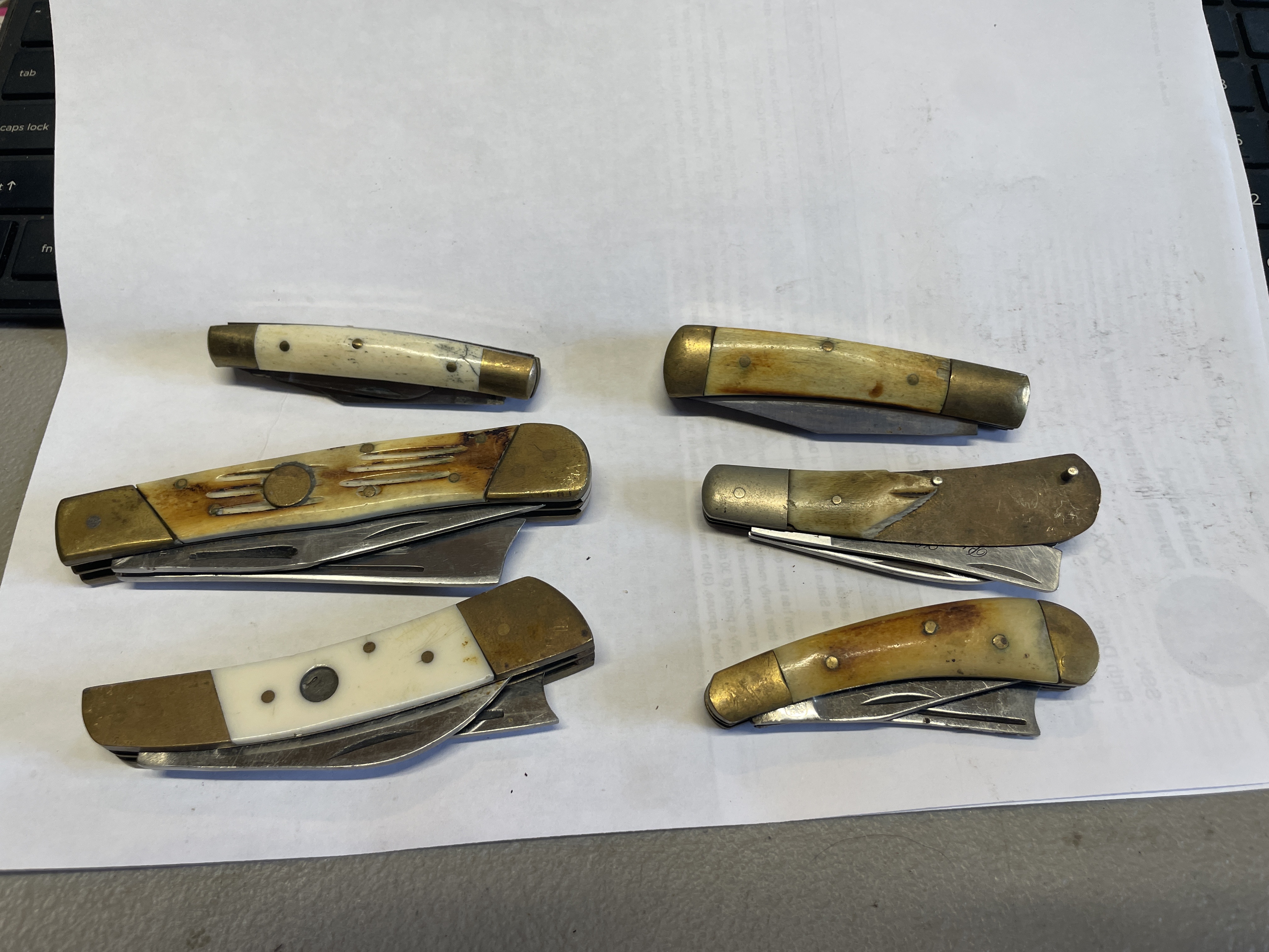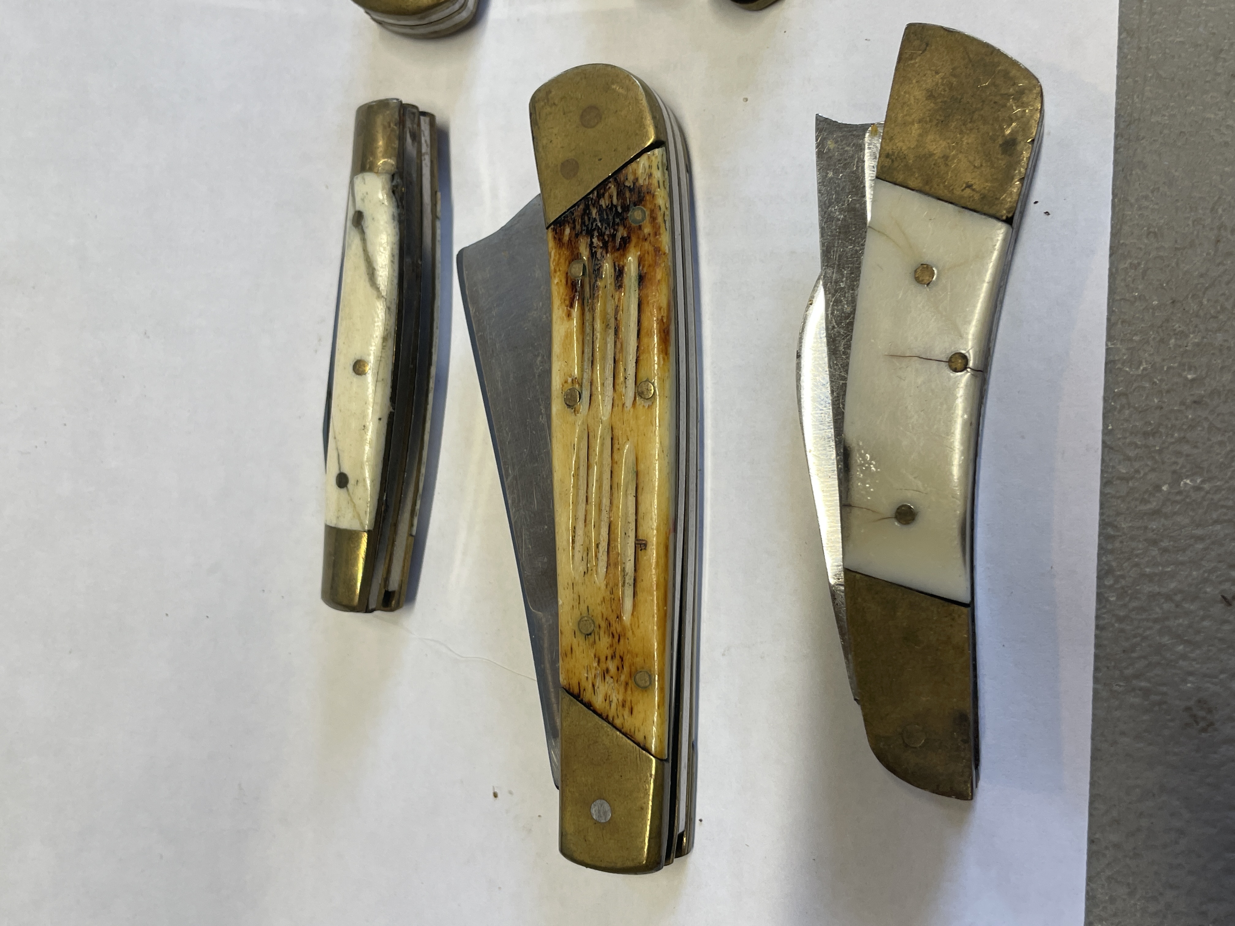 6 BONE HANDLED KNIVES VARIOUS MAKERS SOME HAVE DAMAGED SCALES SEE PICTURES FOR CONDITION