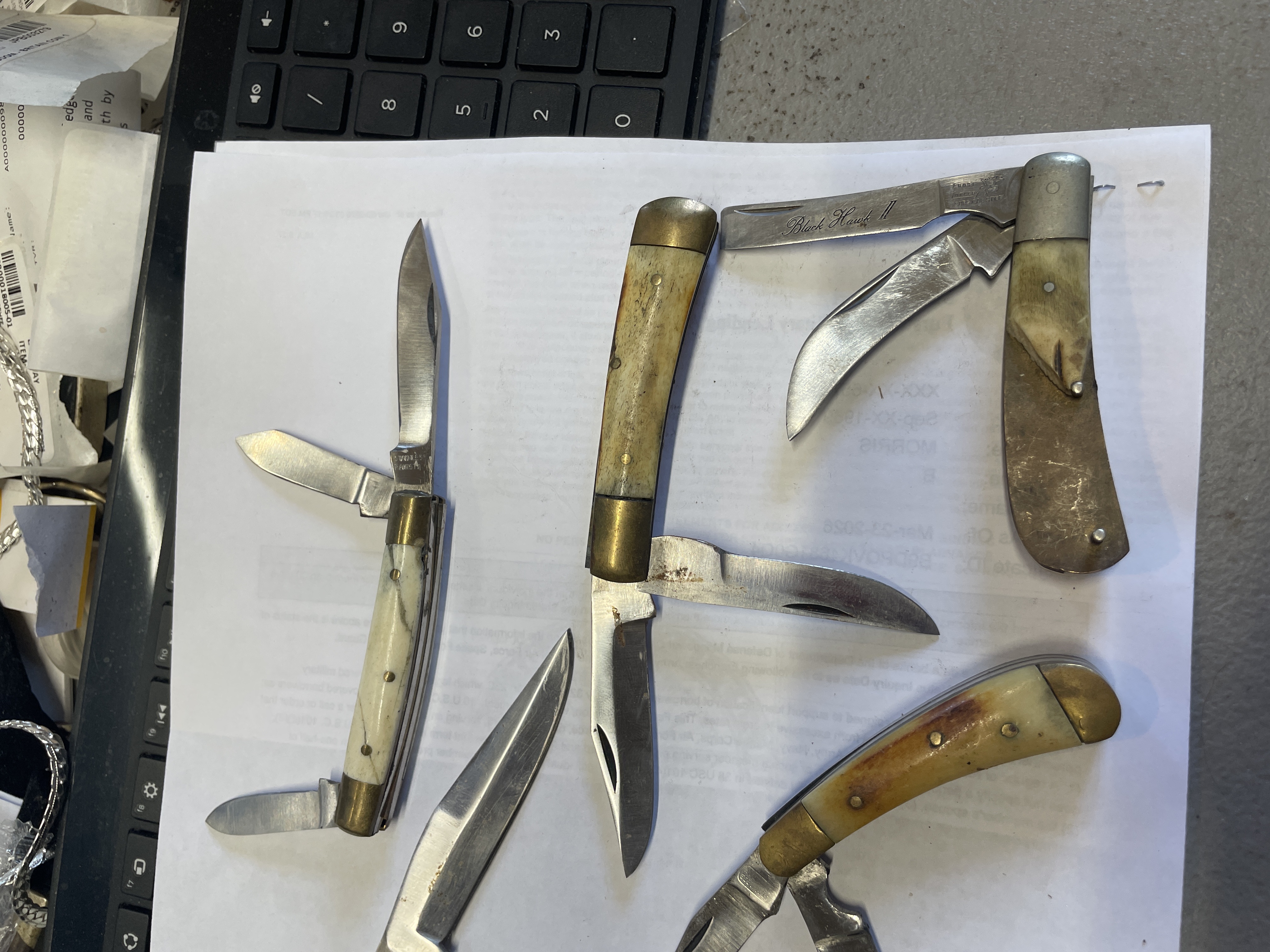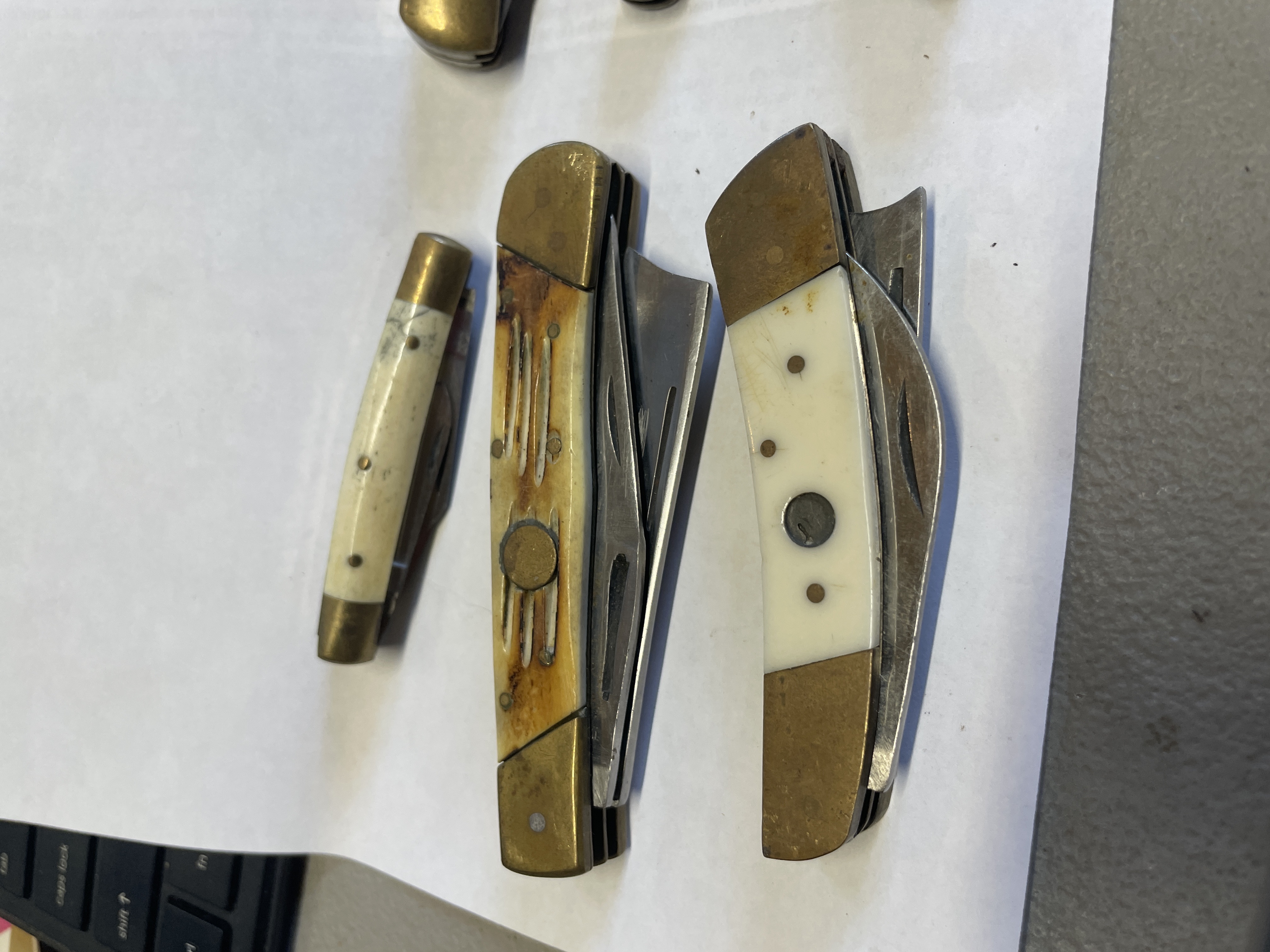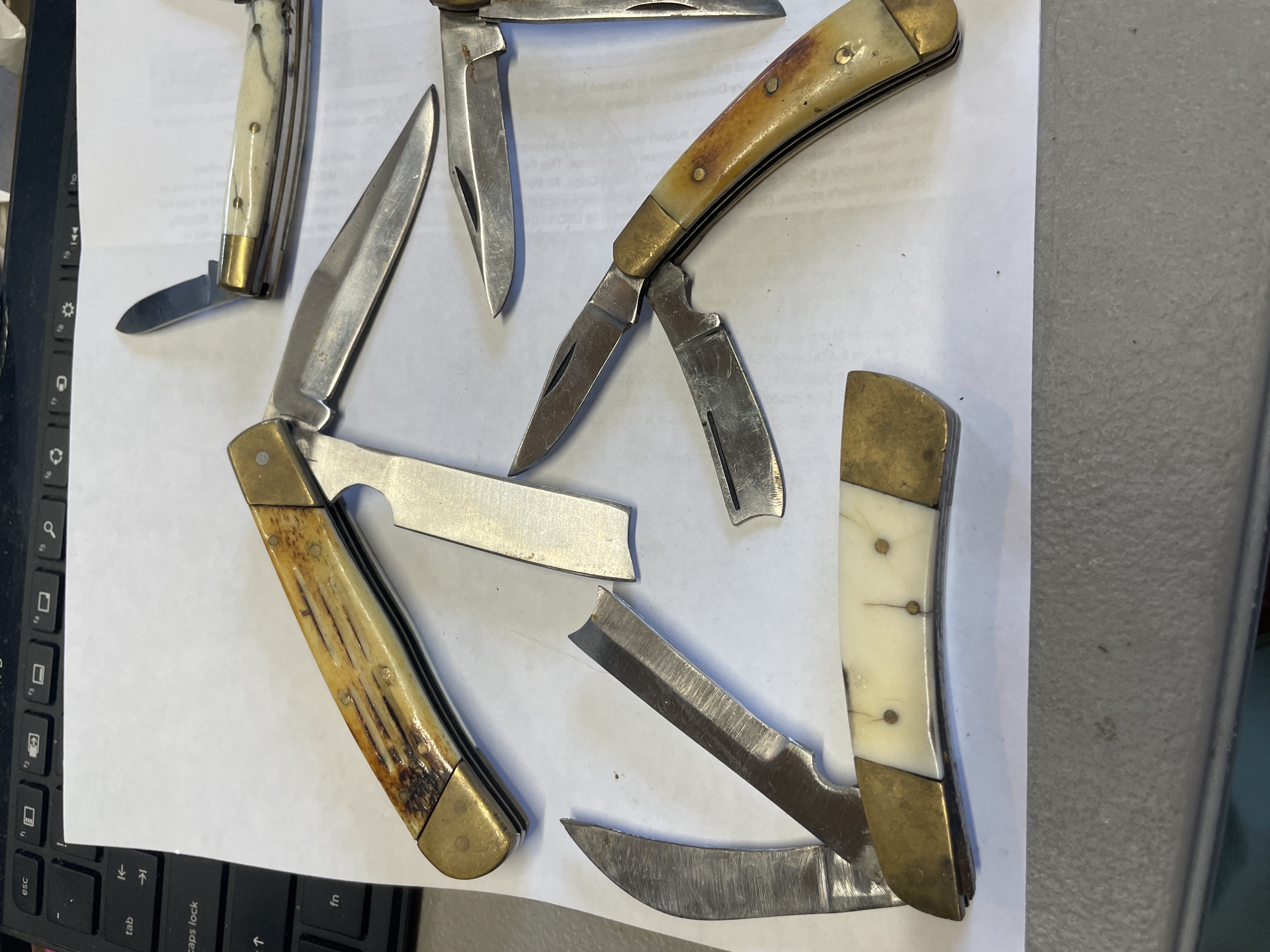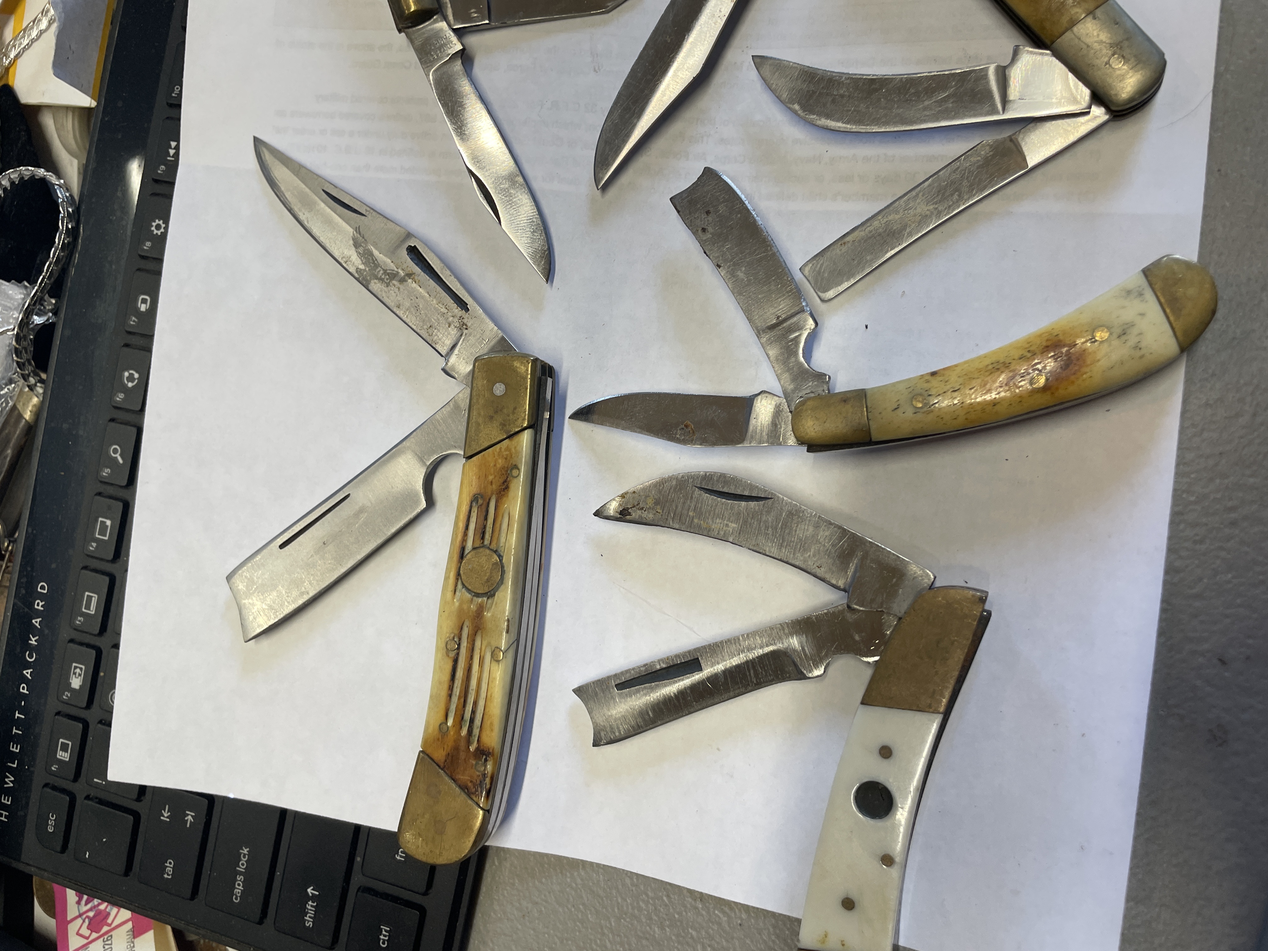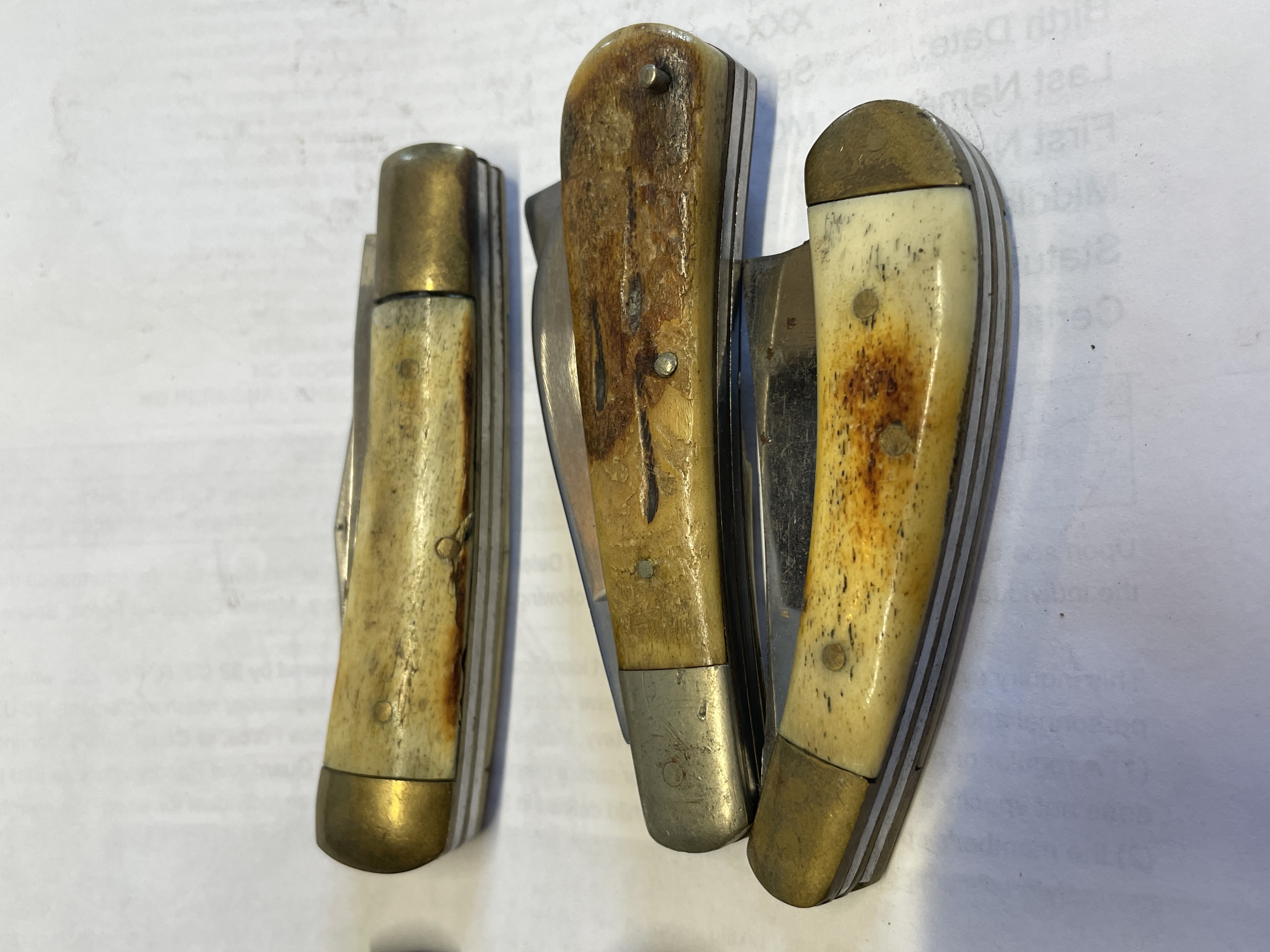 6 BONE HANDLED KNIVES VARIOUS MAKERS SOME HAVE DAMAGED SCALES SEE PICTURES FOR CONDITION