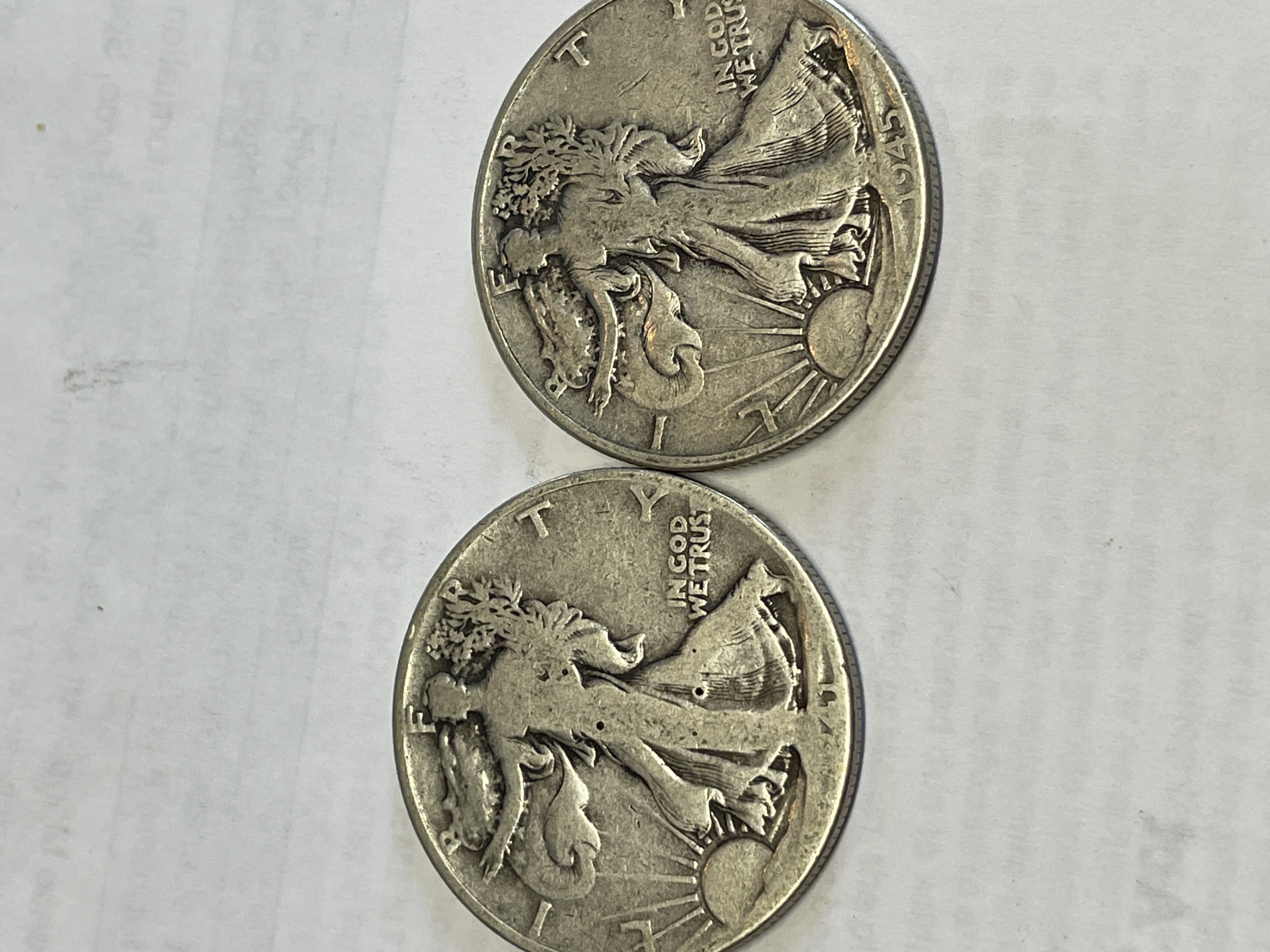 TWO WALKING LIBERTY HALF DOLLARS SEE PICTURES FOR DETAILS