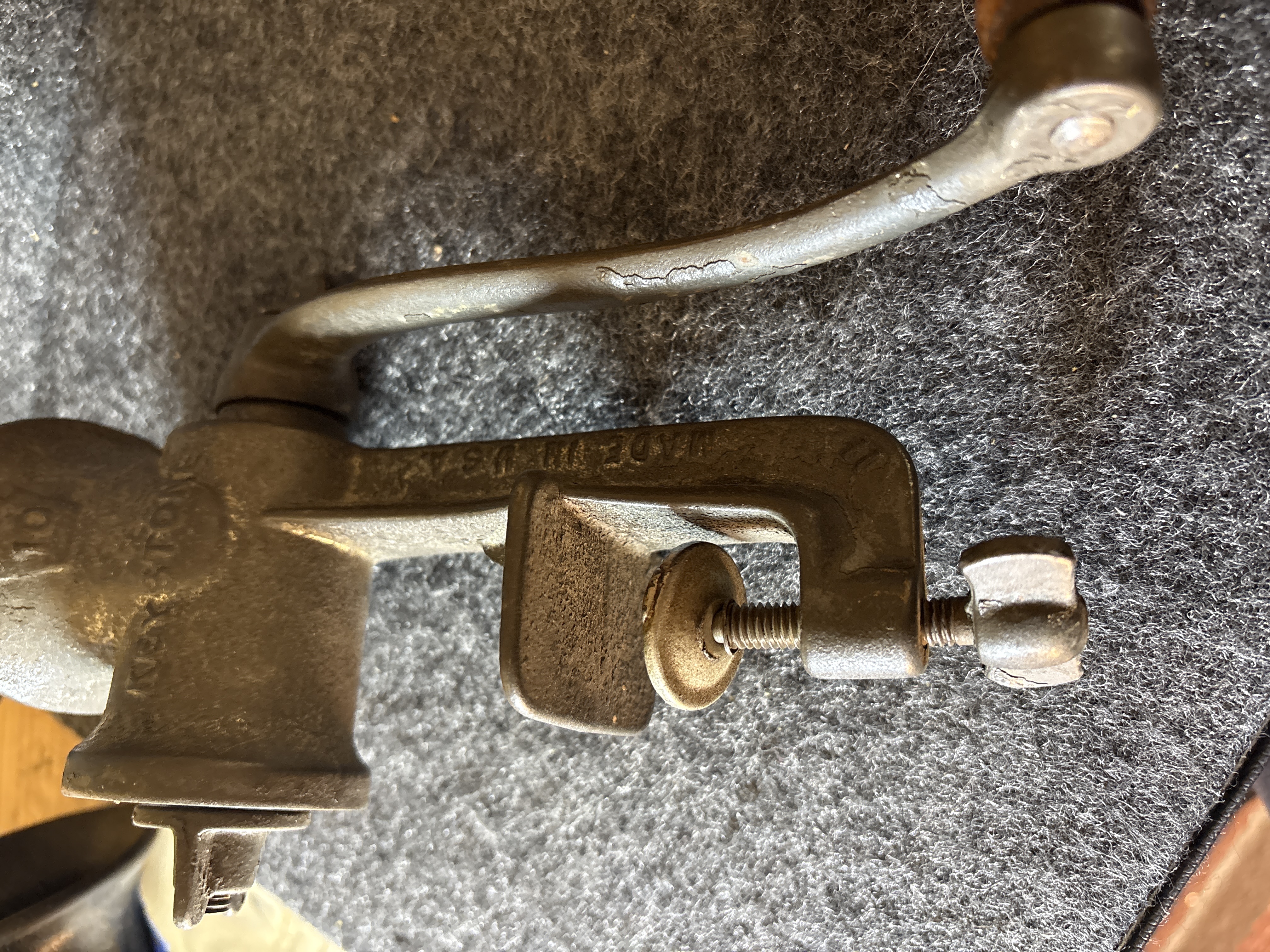 Two Vintage Cast Iron Hand Crank Meat Grinders, Keystone and Universal No. 2