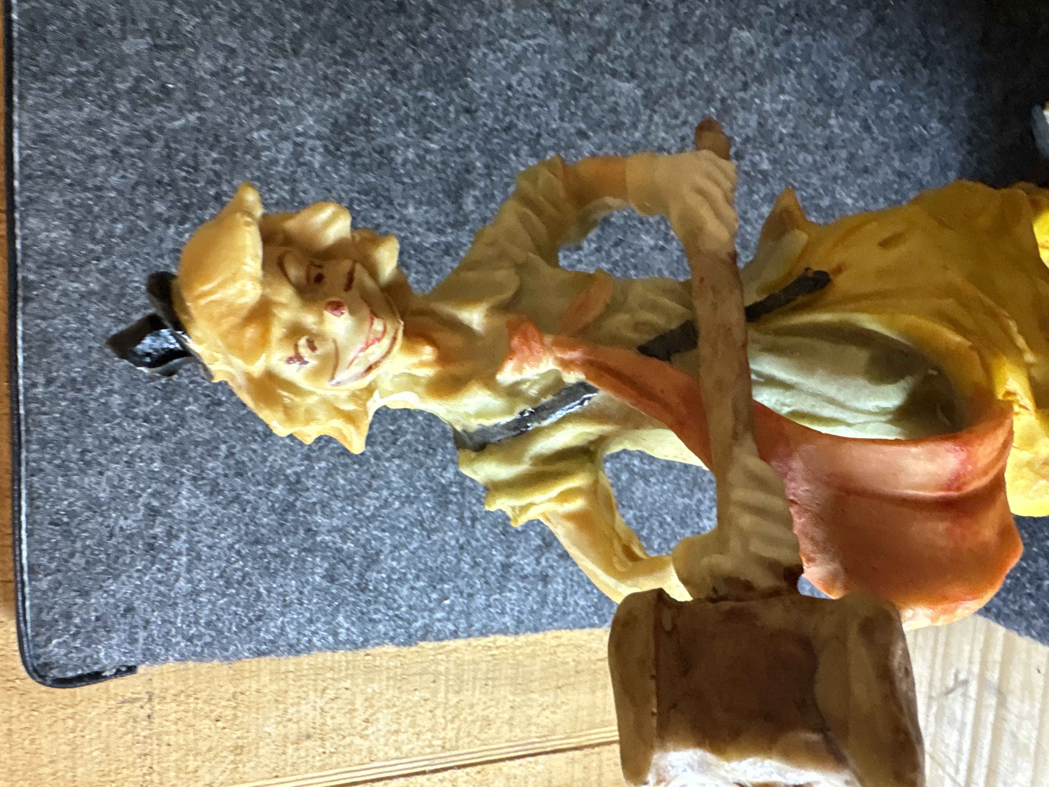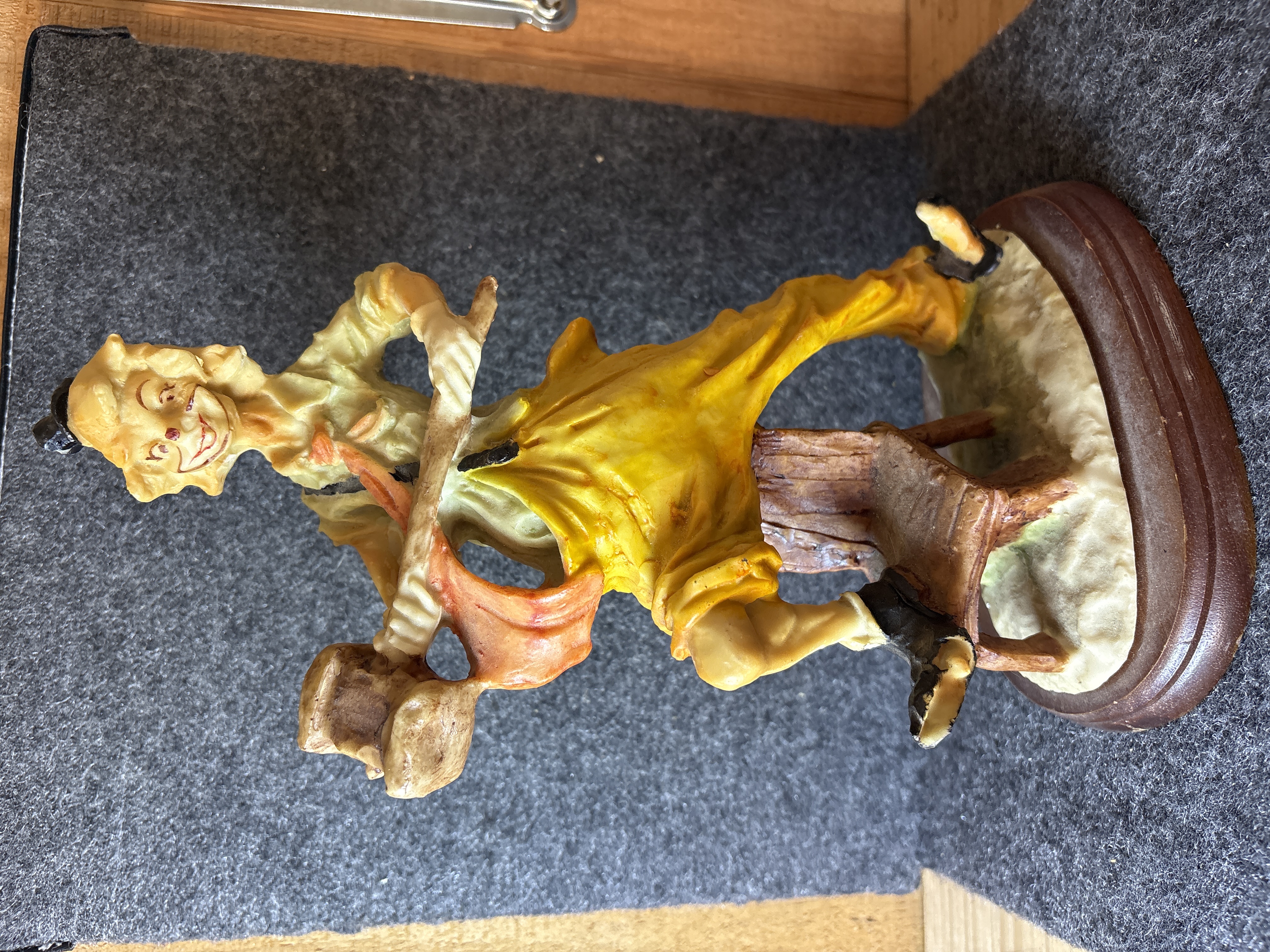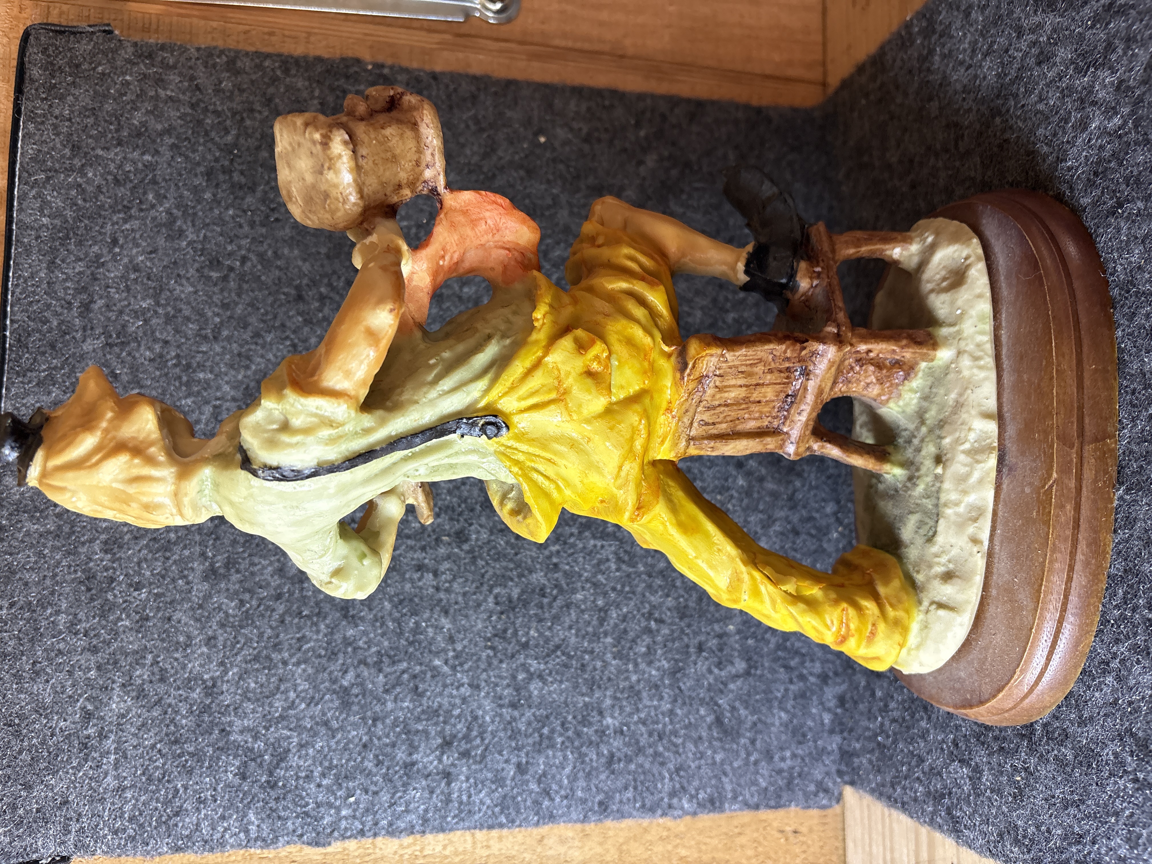 Italian Style Hand Painted Figurine of a Hobo with Mallet on Bench