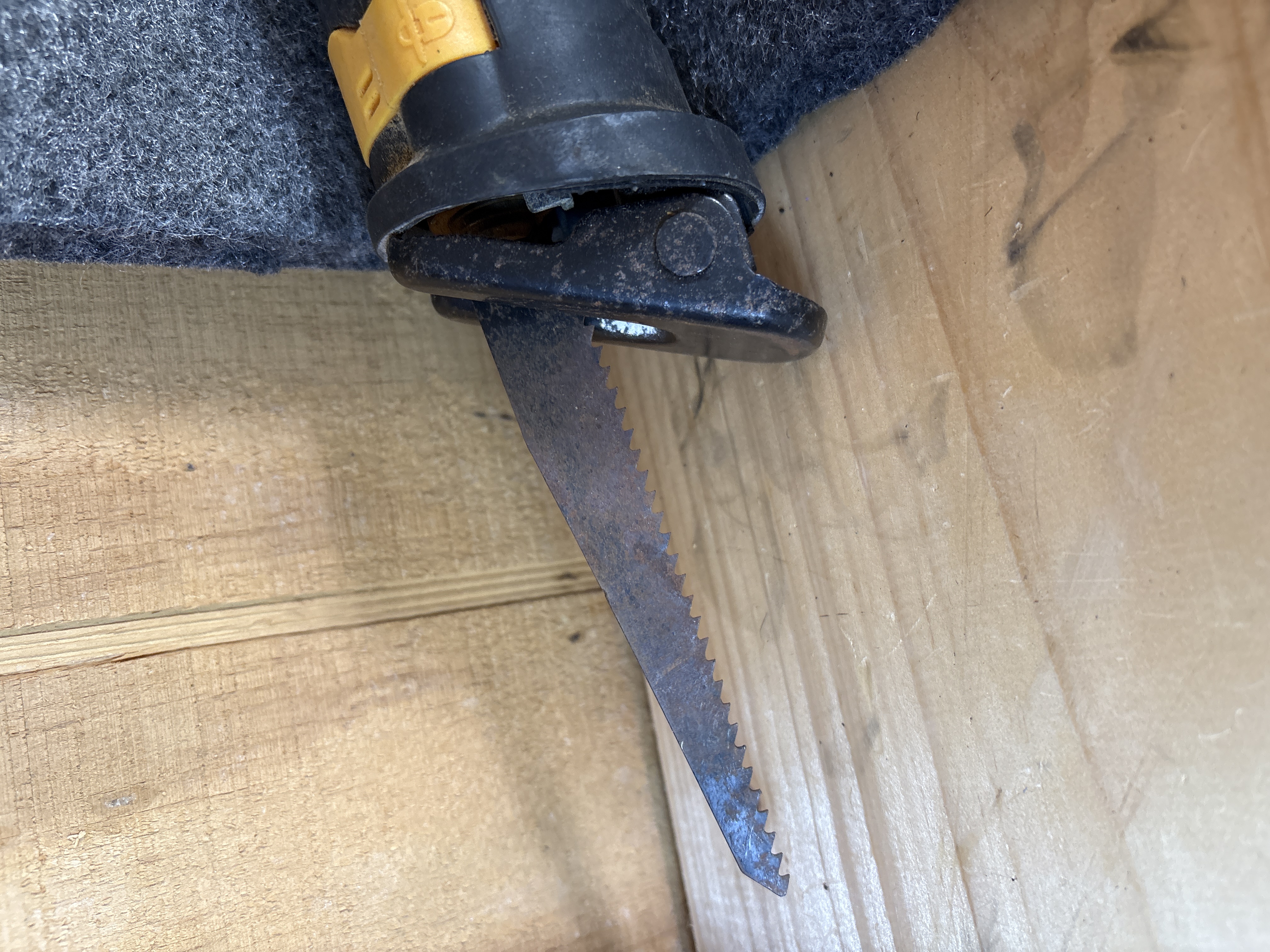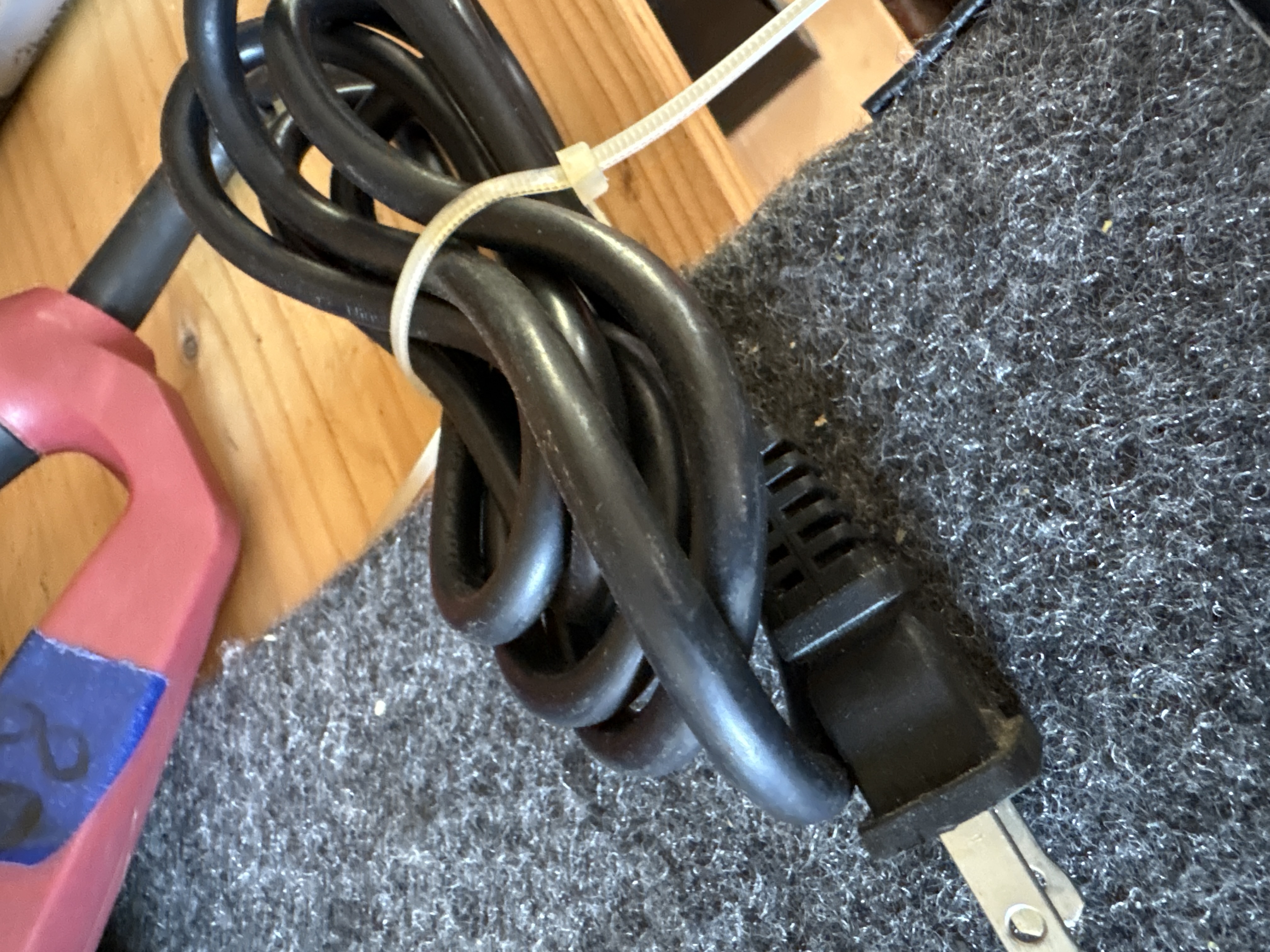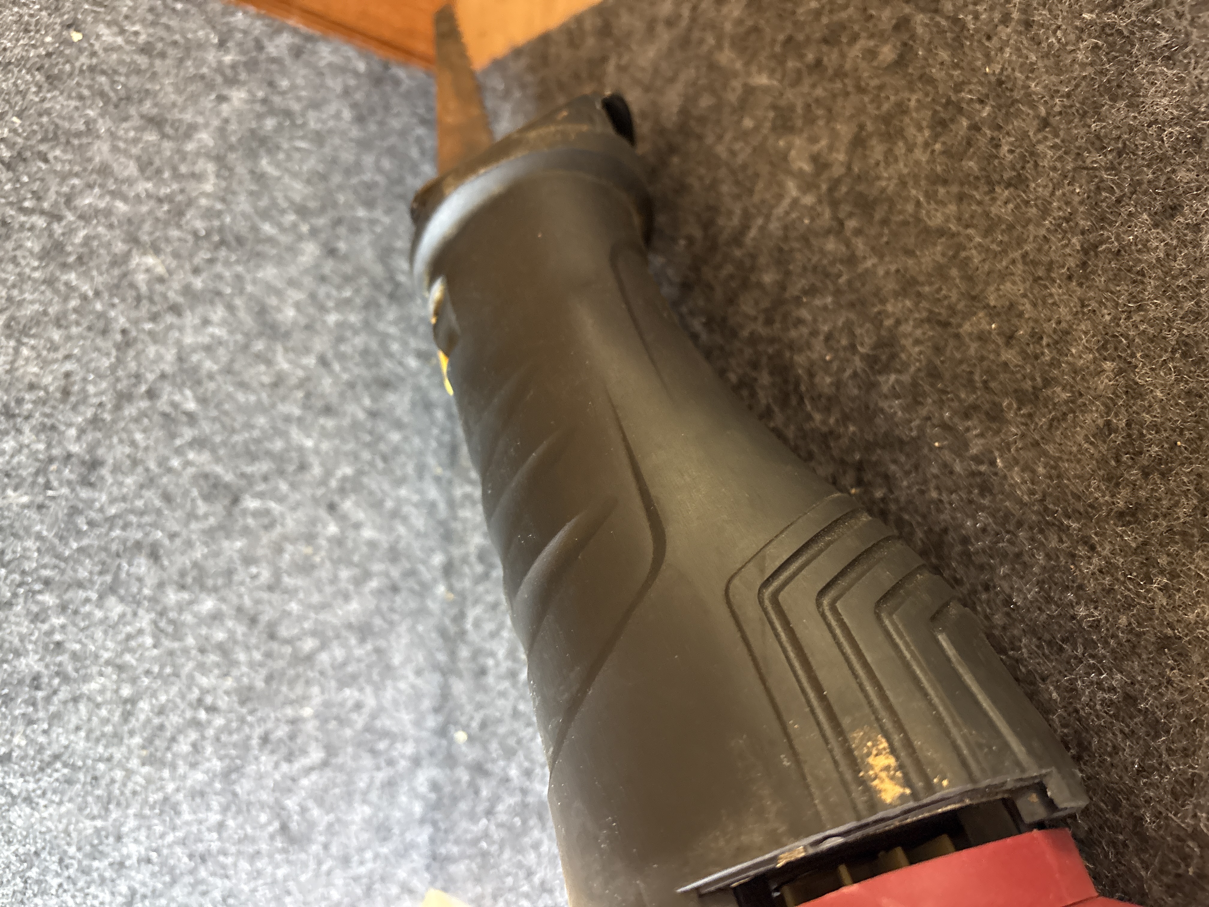 This is a Chicago Electric Power Tools corded reciprocating saw, item number 61884. The tool is equipped with a 6A motor designed for 120VAC operation, providing a variable speed range of 0-2500 strokes per minute (SPM). The housing is constructed of red and black plastic and features a rotating handle design. A manufacturer label is visible on the side of the tool body, which includes the serial number 369951541 and relevant electrical specifications. The unit has an integrated power cord that is currently bundled with a white plastic zip-tie. A single metal saw blade is installed in the chuck. This item is a loose tool and does not include original packaging, manuals, or additional accessories.