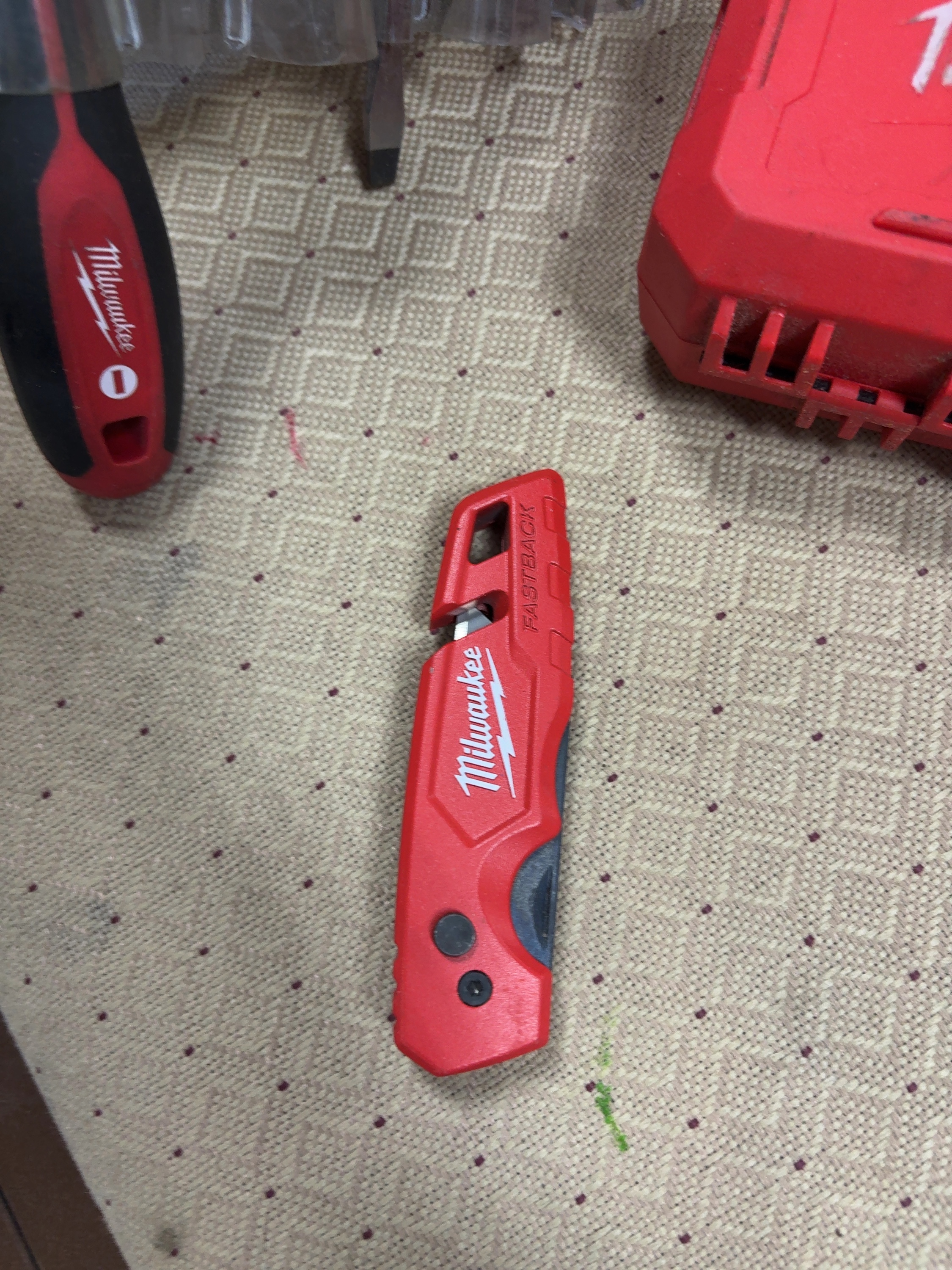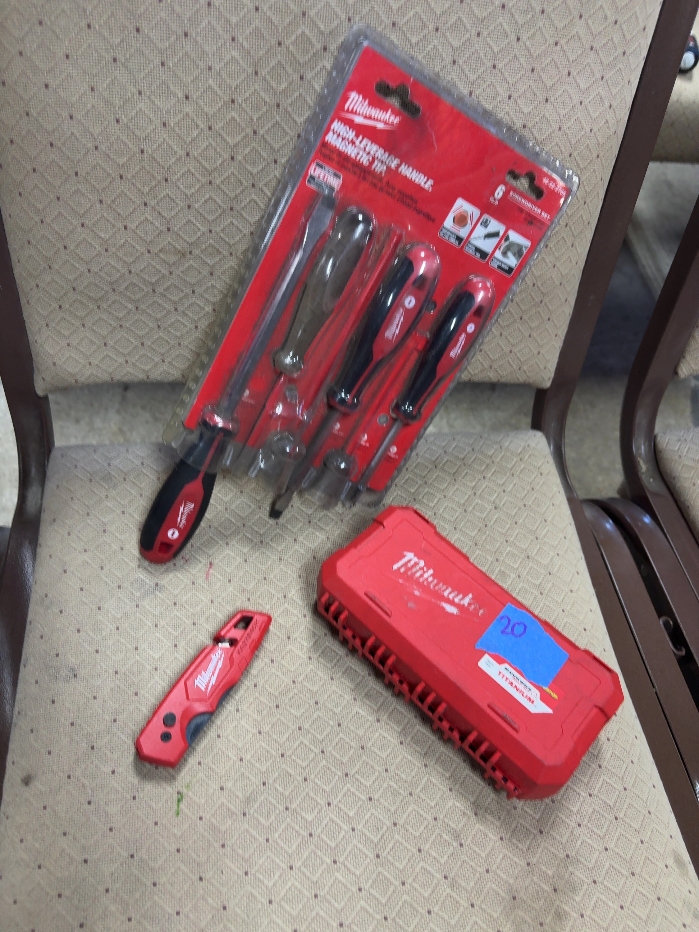 A Group of Milwaukee Hand Tools and Accessories Including Screwdriver Set Fastback Utility Knife and Titanium Drill Bit Set