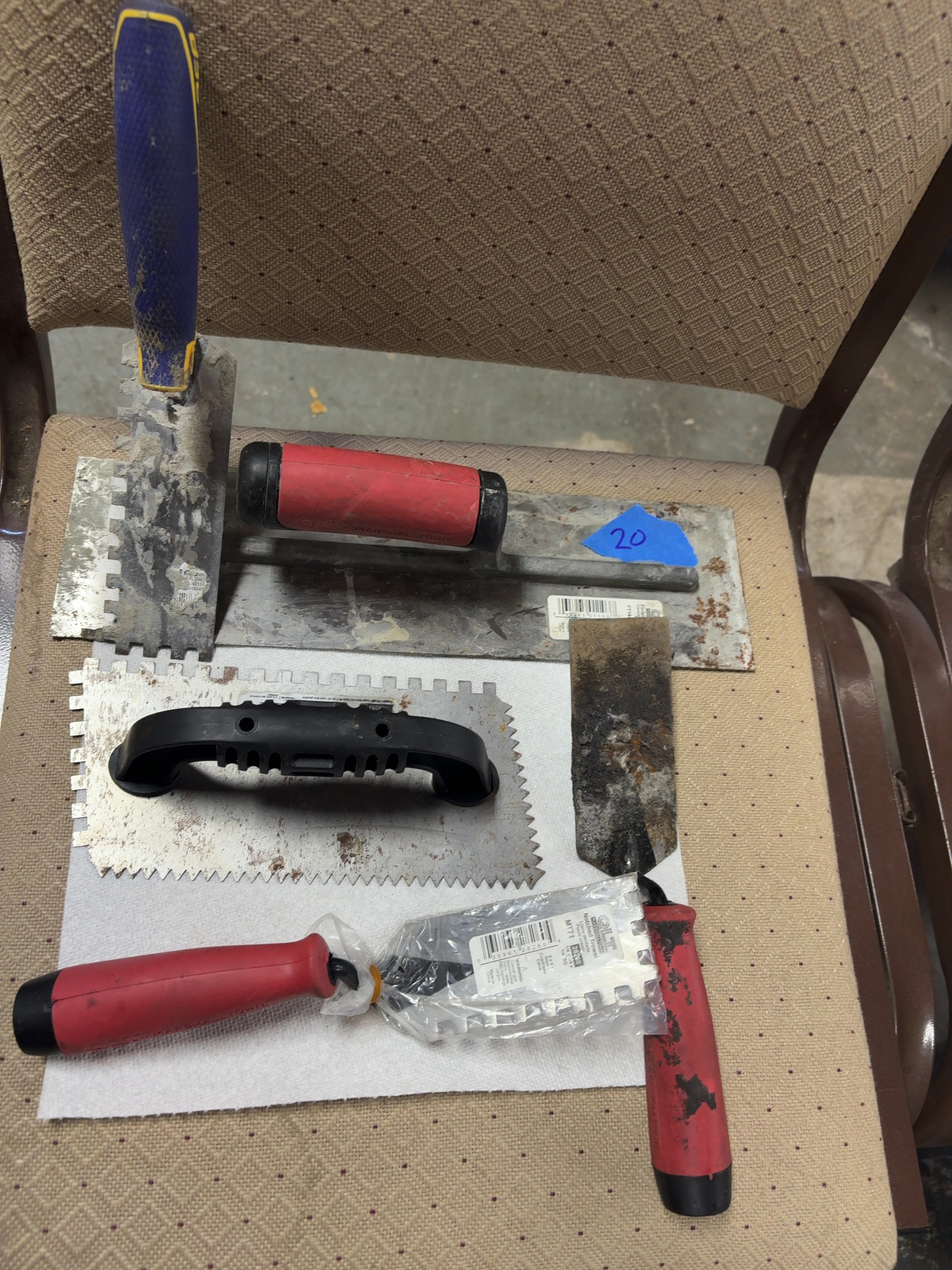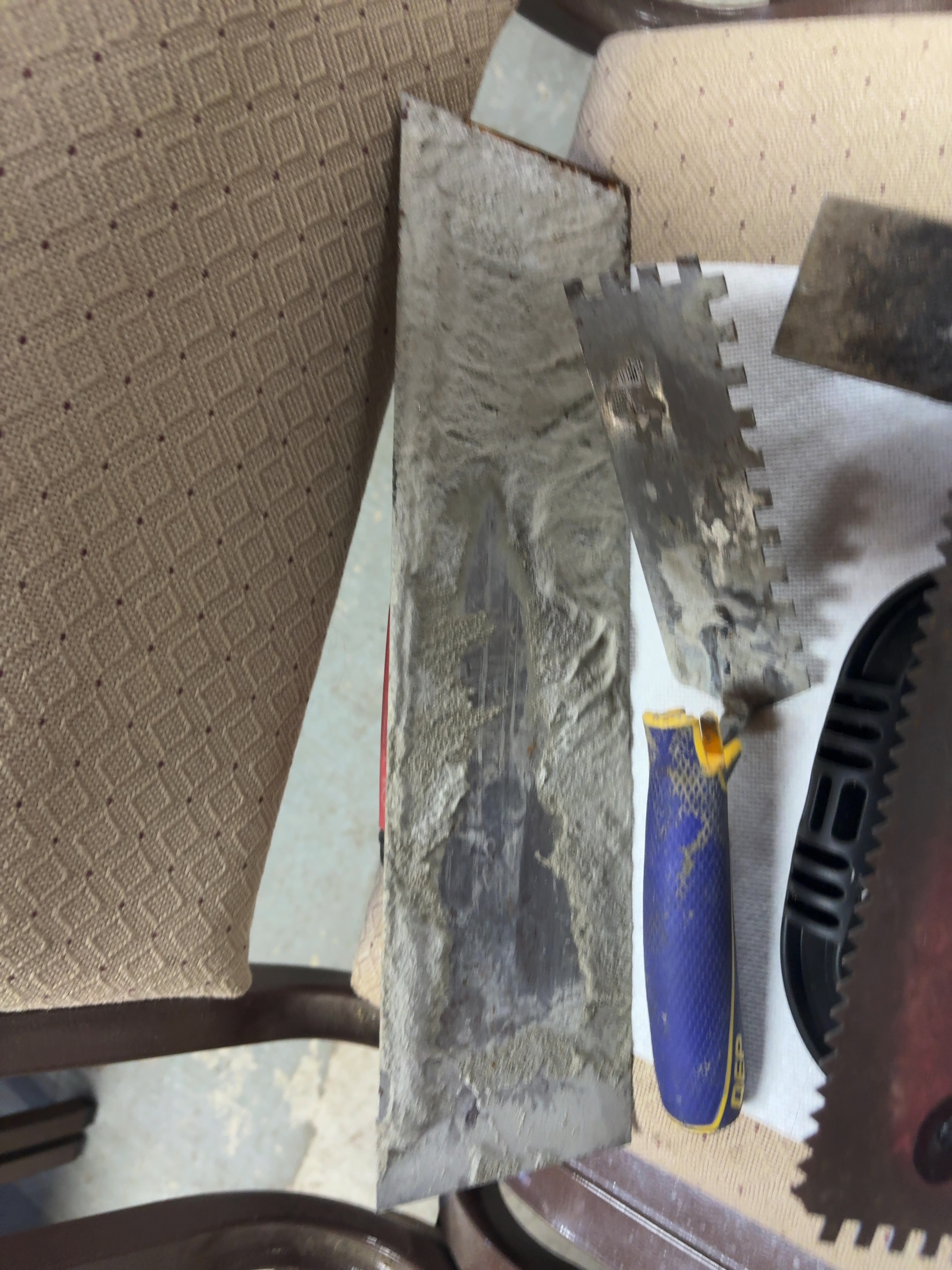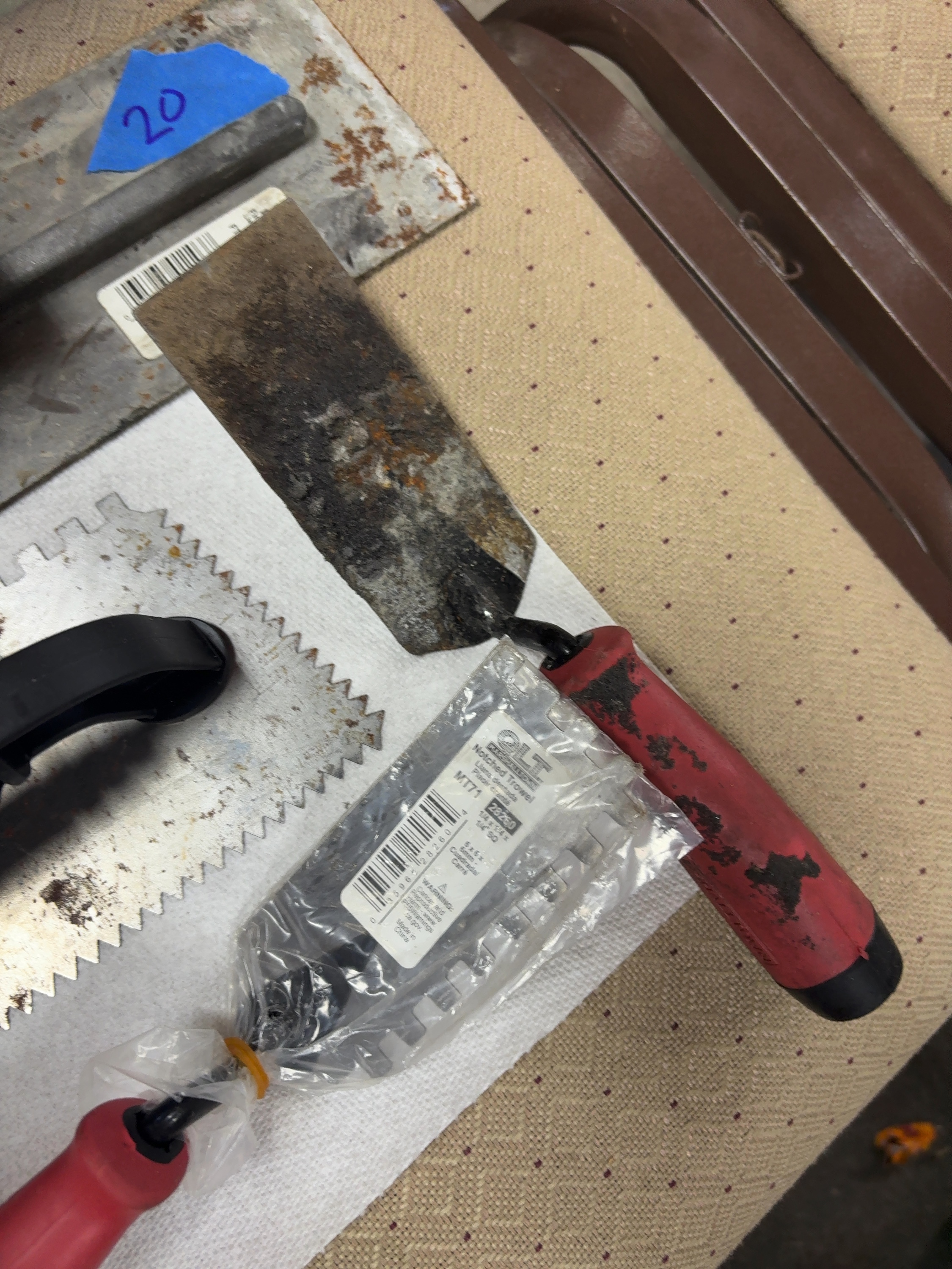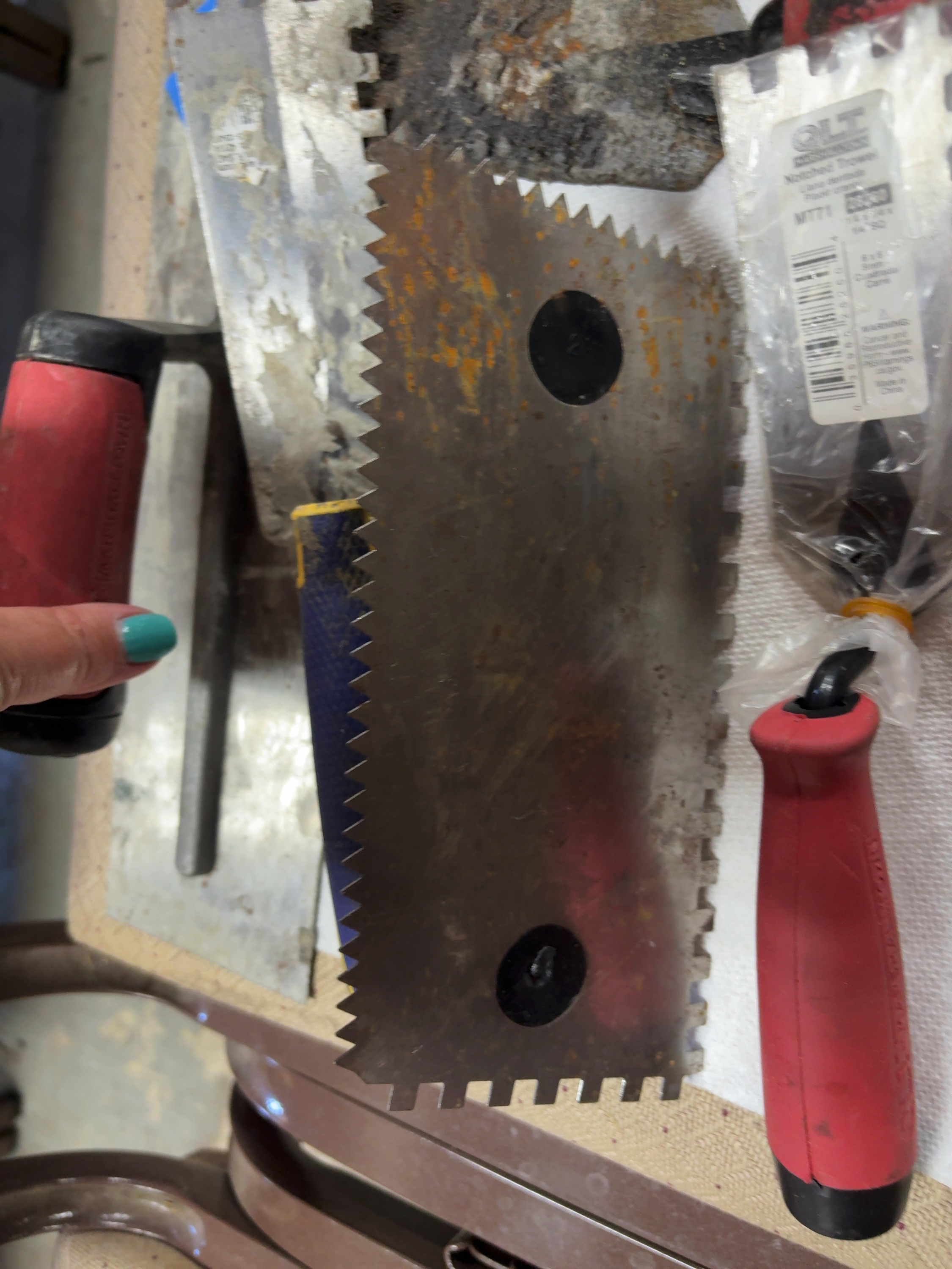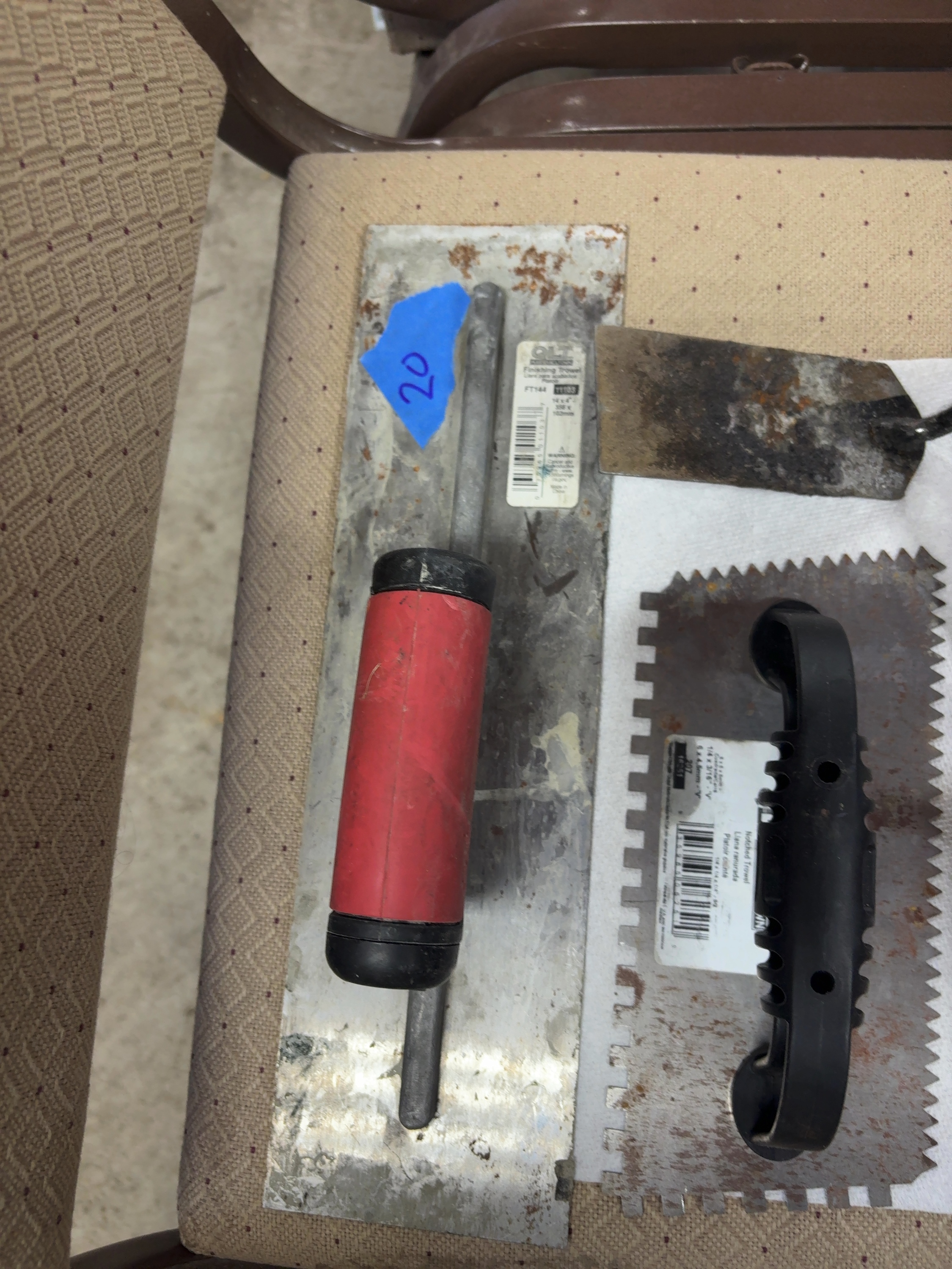 Finishing trowel: 14 x 4 inches.