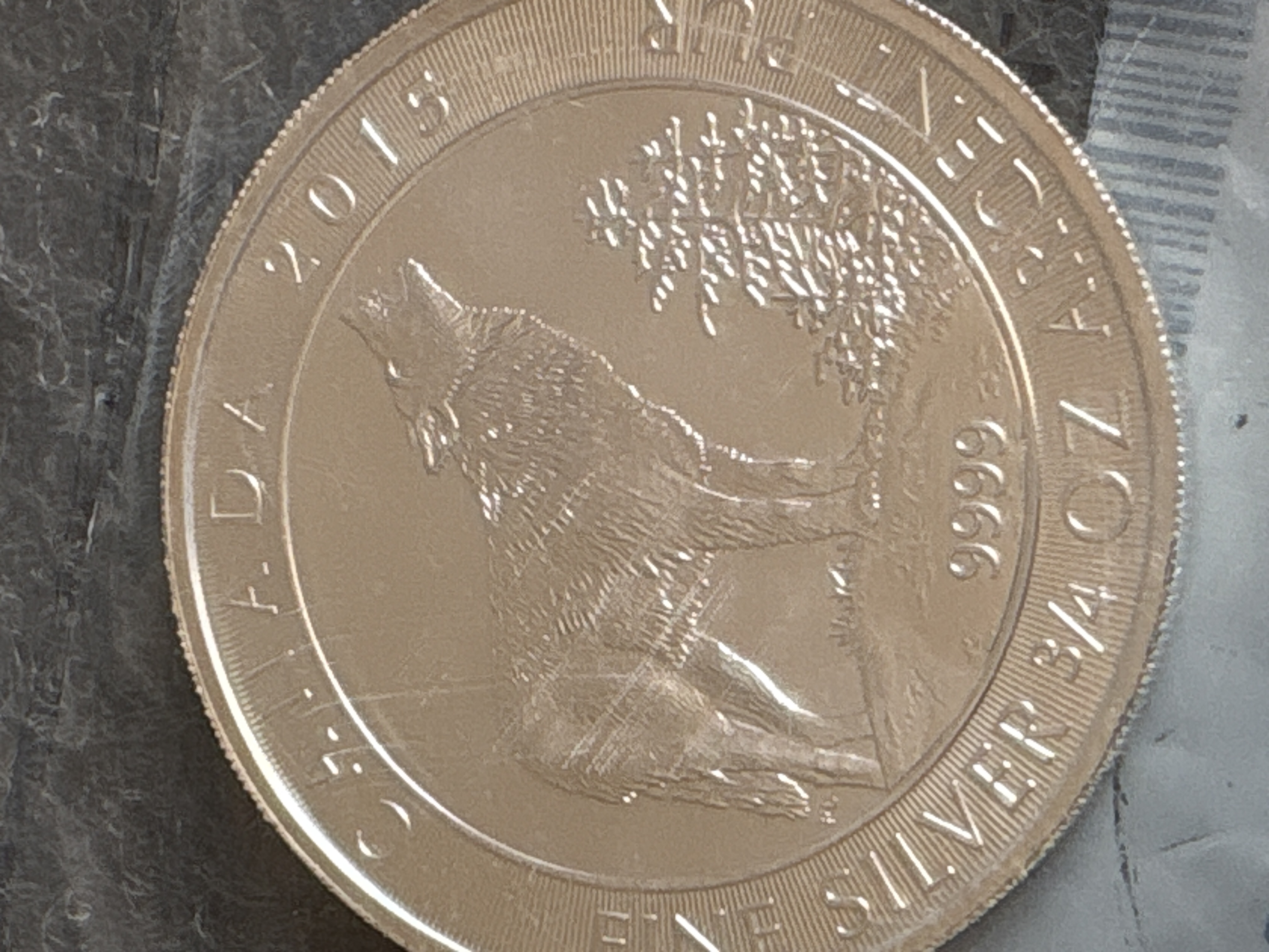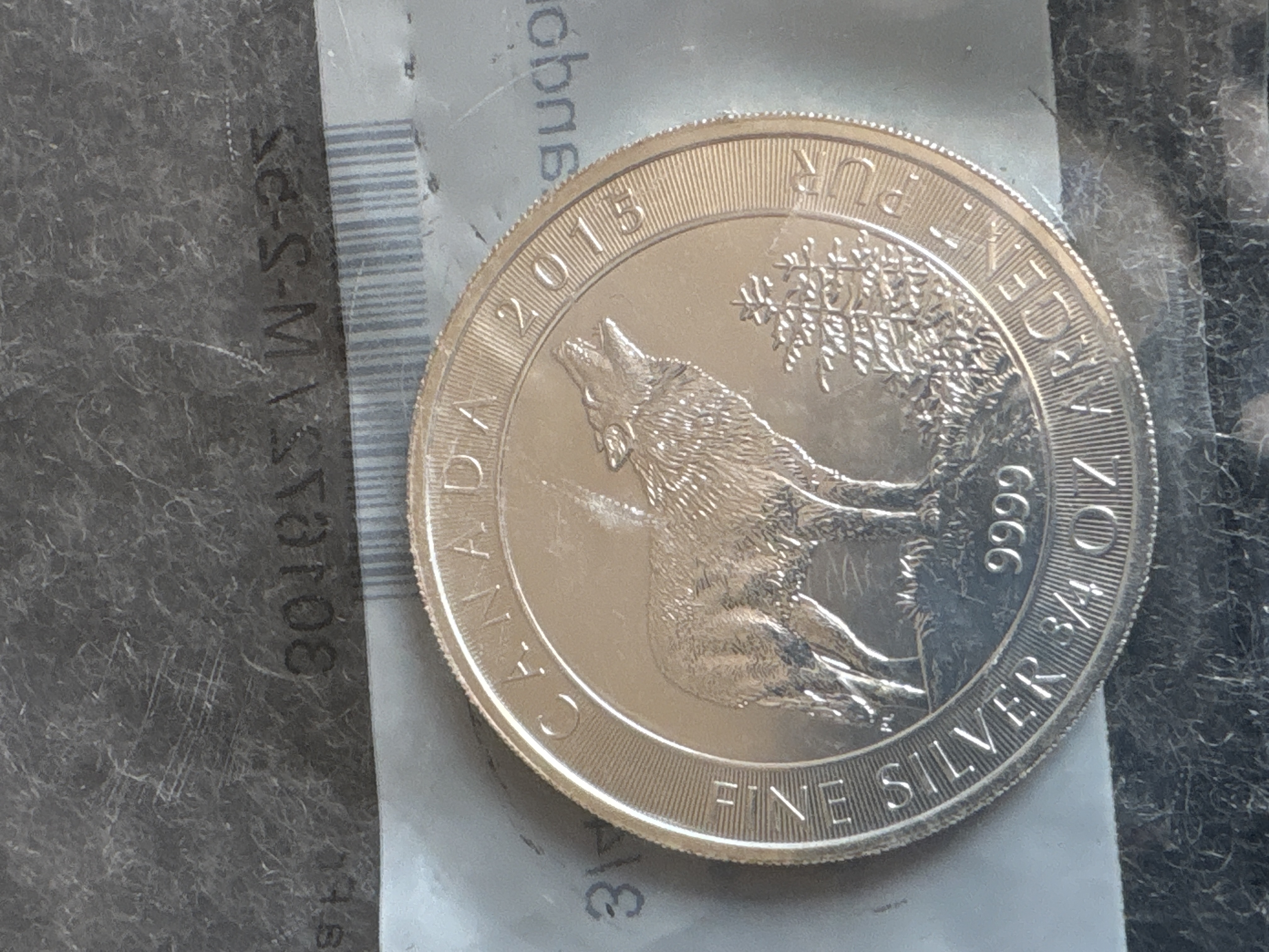 2015 Royal Canadian Mint 3/4 oz .9999 Fine Silver Grey Wolf Coin
