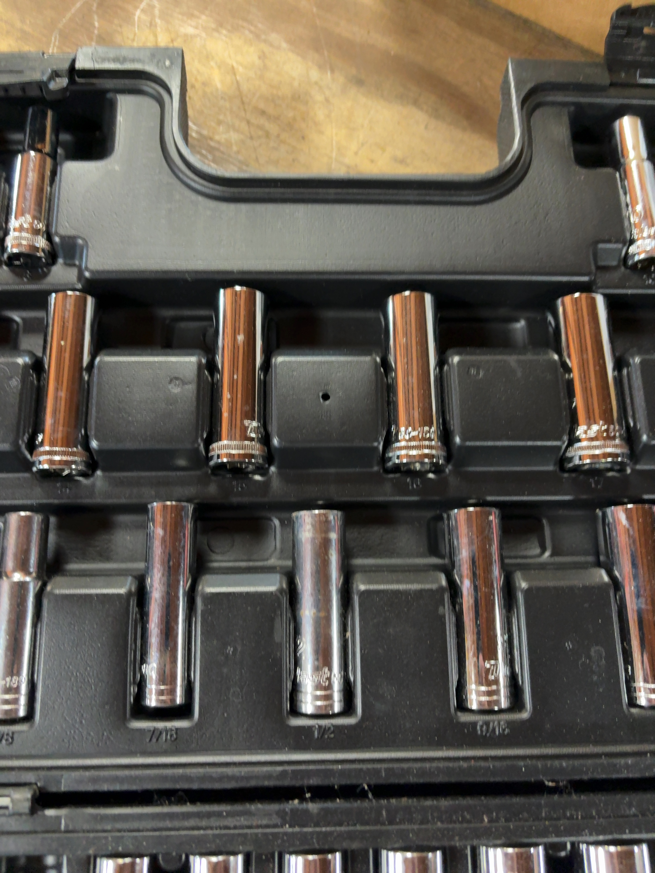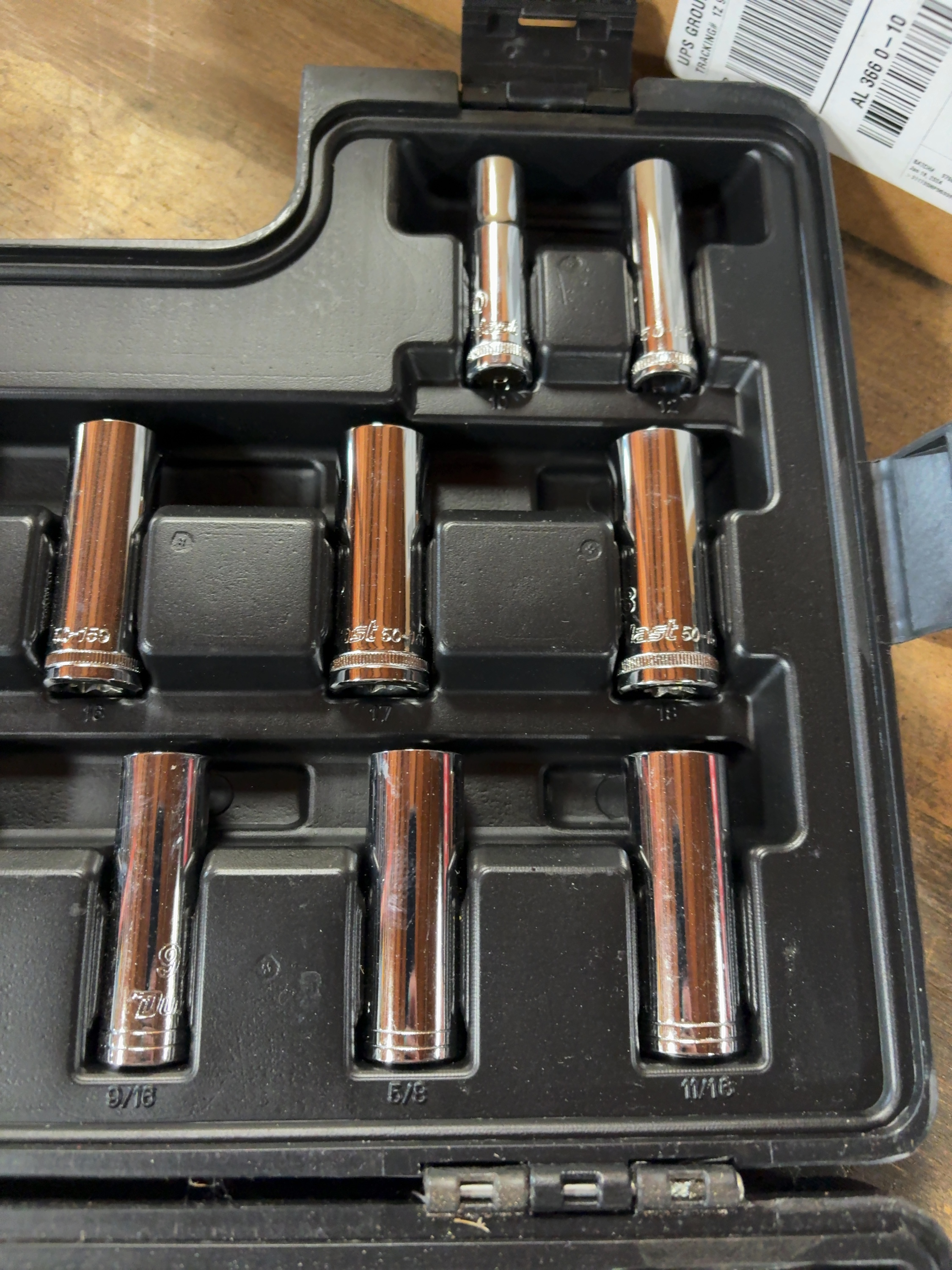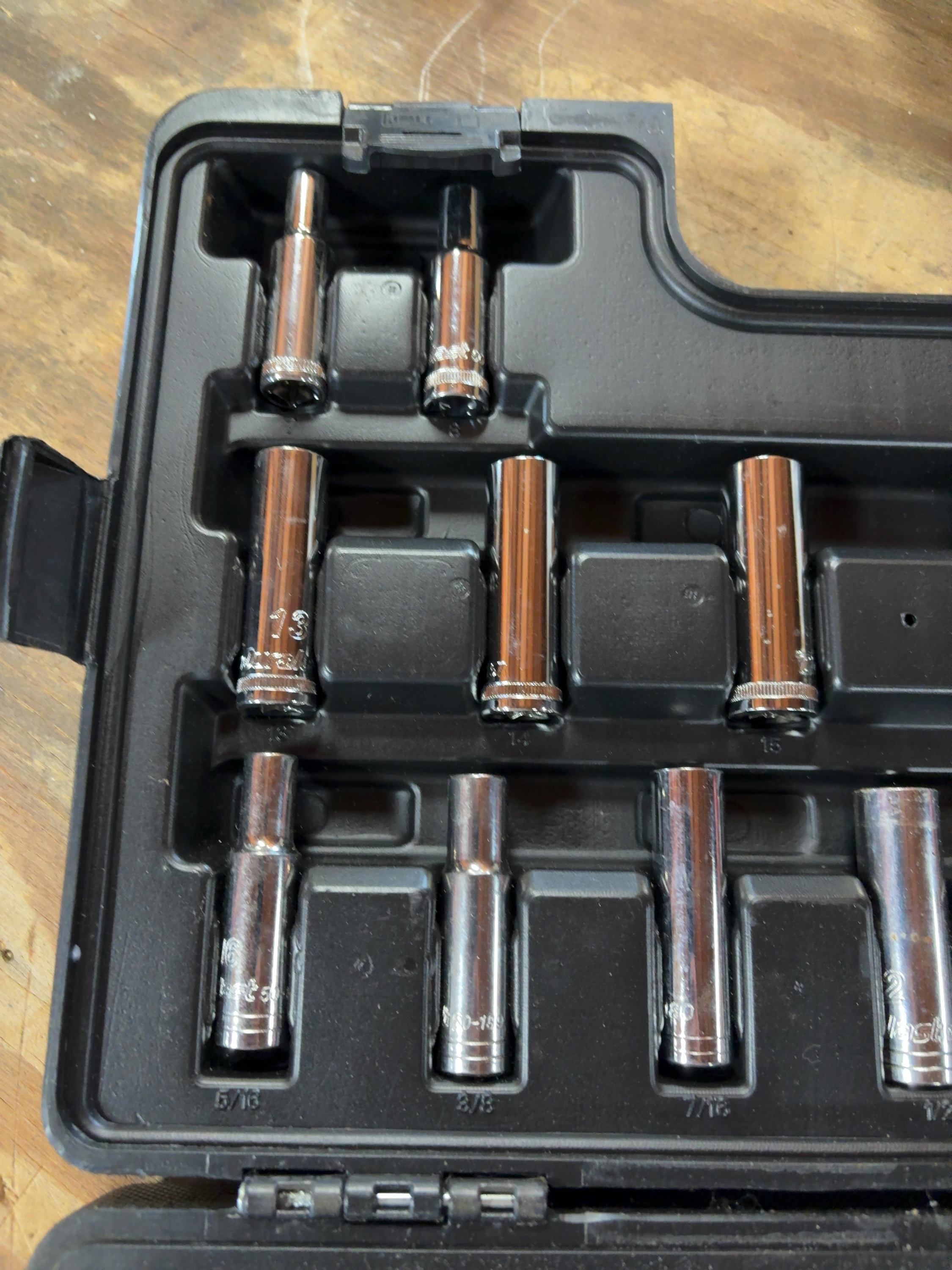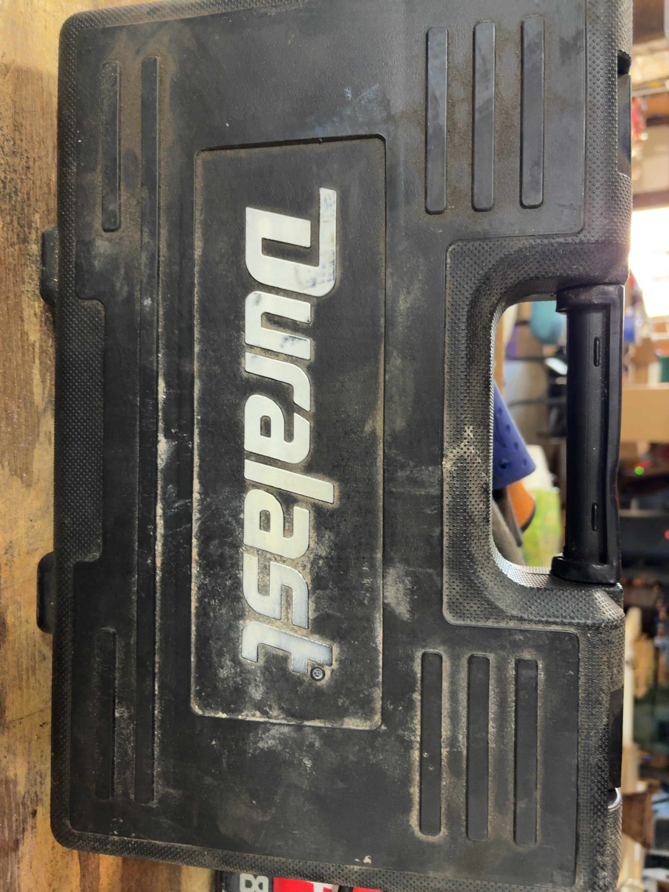 A Duralast brand mechanic tool set featuring a 3/8-inch drive ratchet and various accessories. The tools are constructed of chrome-plated steel and are housed in a black molded-plastic carrying case. The exterior of the case and the ratchet handle are marked with the Duralast name. The set includes a 3/8-inch drive ratchet, two extension bars, a universal joint, and a spark plug socket. The collection contains an assortment of standard and deep-well sockets in both SAE and Metric sizes, including fractional sizes such as 9/16 and 3/4 and metric sizes such as 10 and 15. Also included is a series of driver bit sockets featuring Torx, hex, and Phillips-head types, with visible bit codes including T30, T40, and PH 2. One extension bar bears the stamped inscription GUARANTEED FOR LIFE. Individual components are stamped with the Duralast brand and their respective sizes.