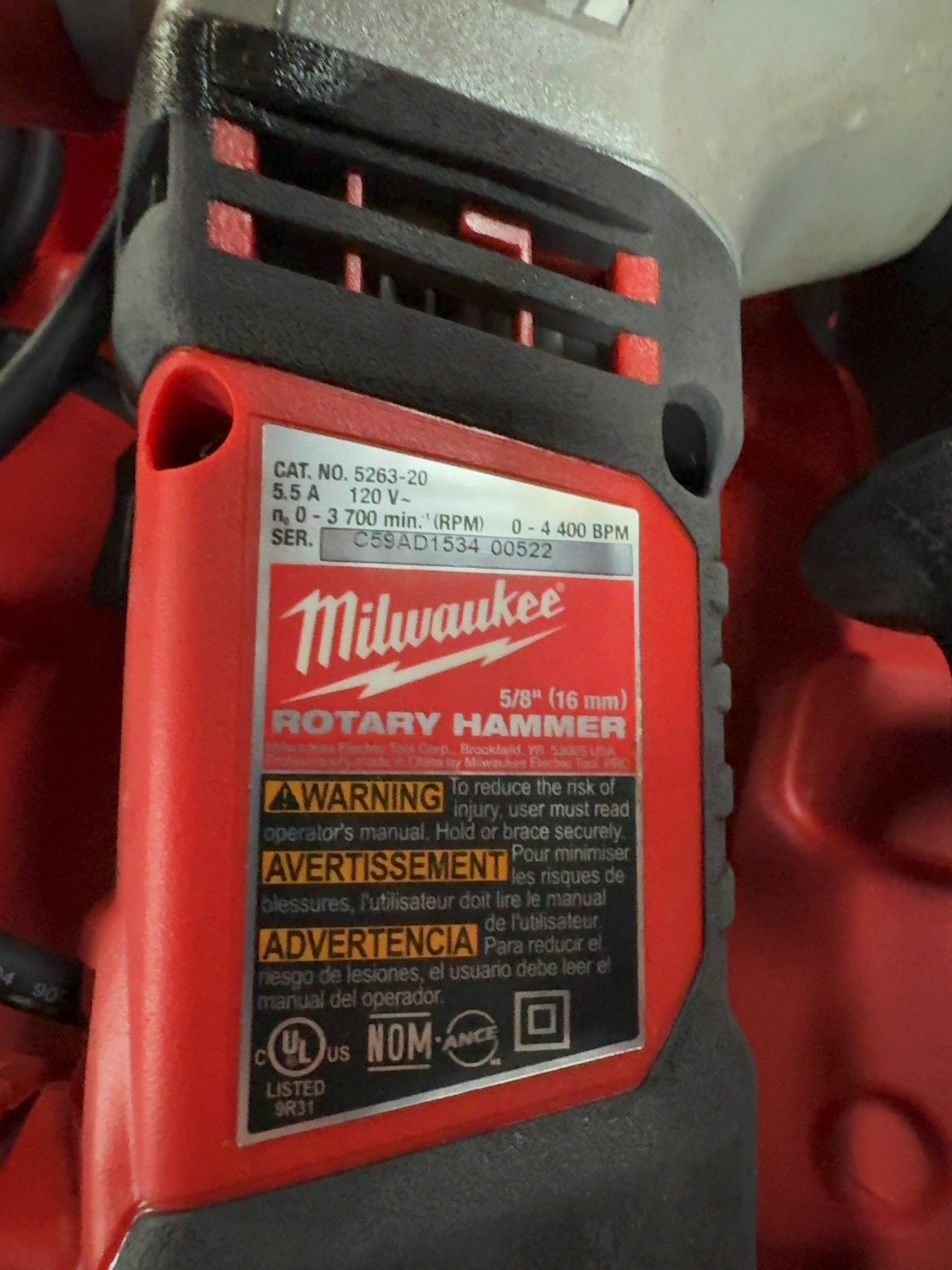 Milwaukee Model 5263-20 SDS Plus Rotary Hammer with Case and Manual