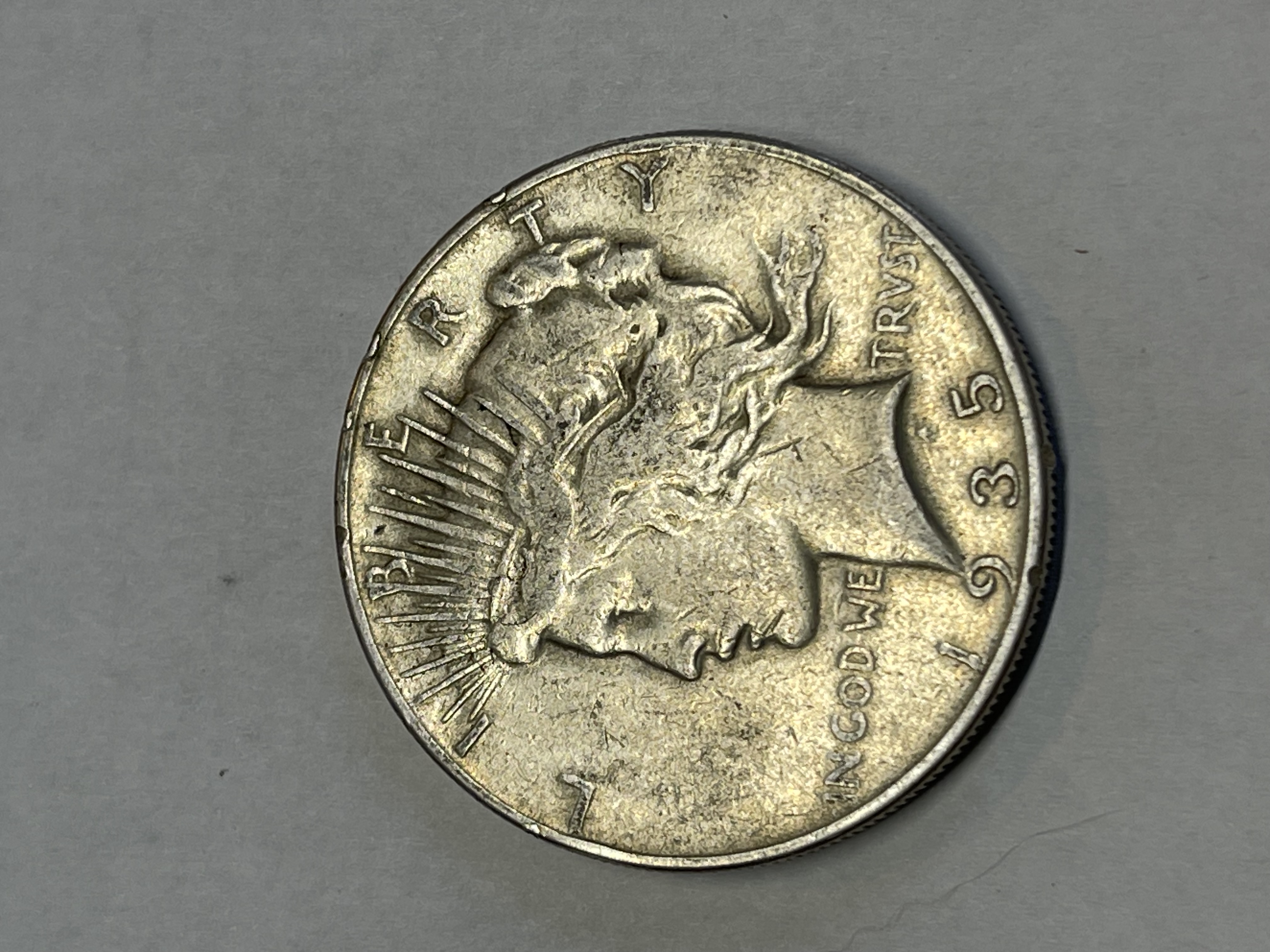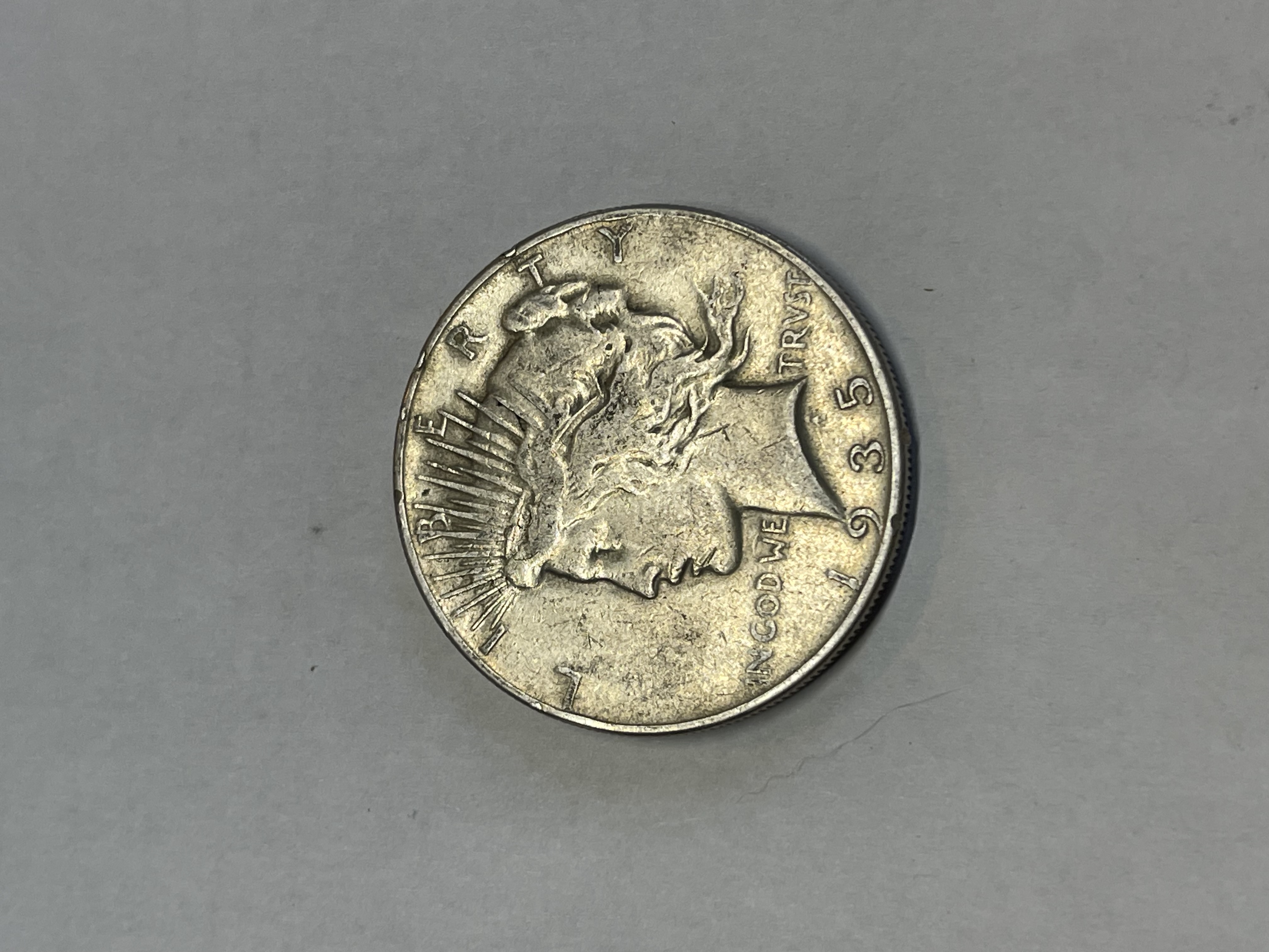 1935 peace dollar no mint mark! See pictures for condition
