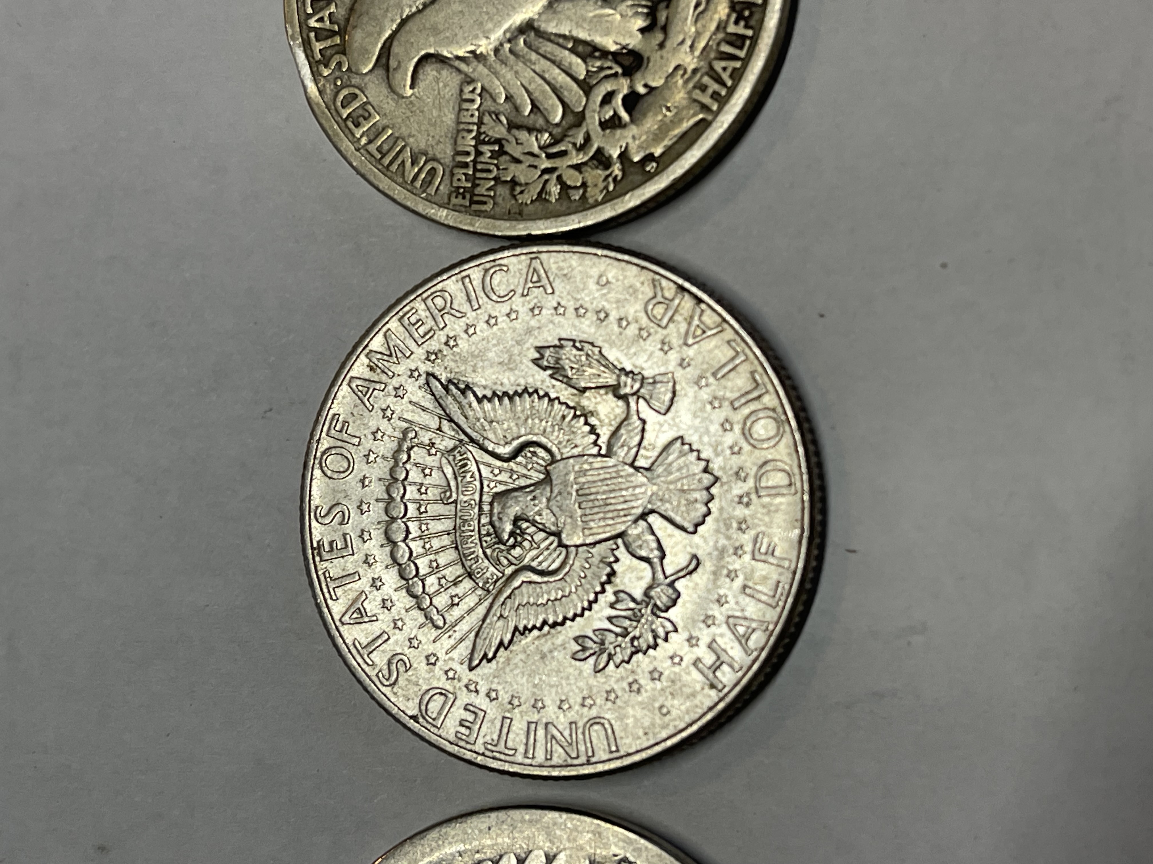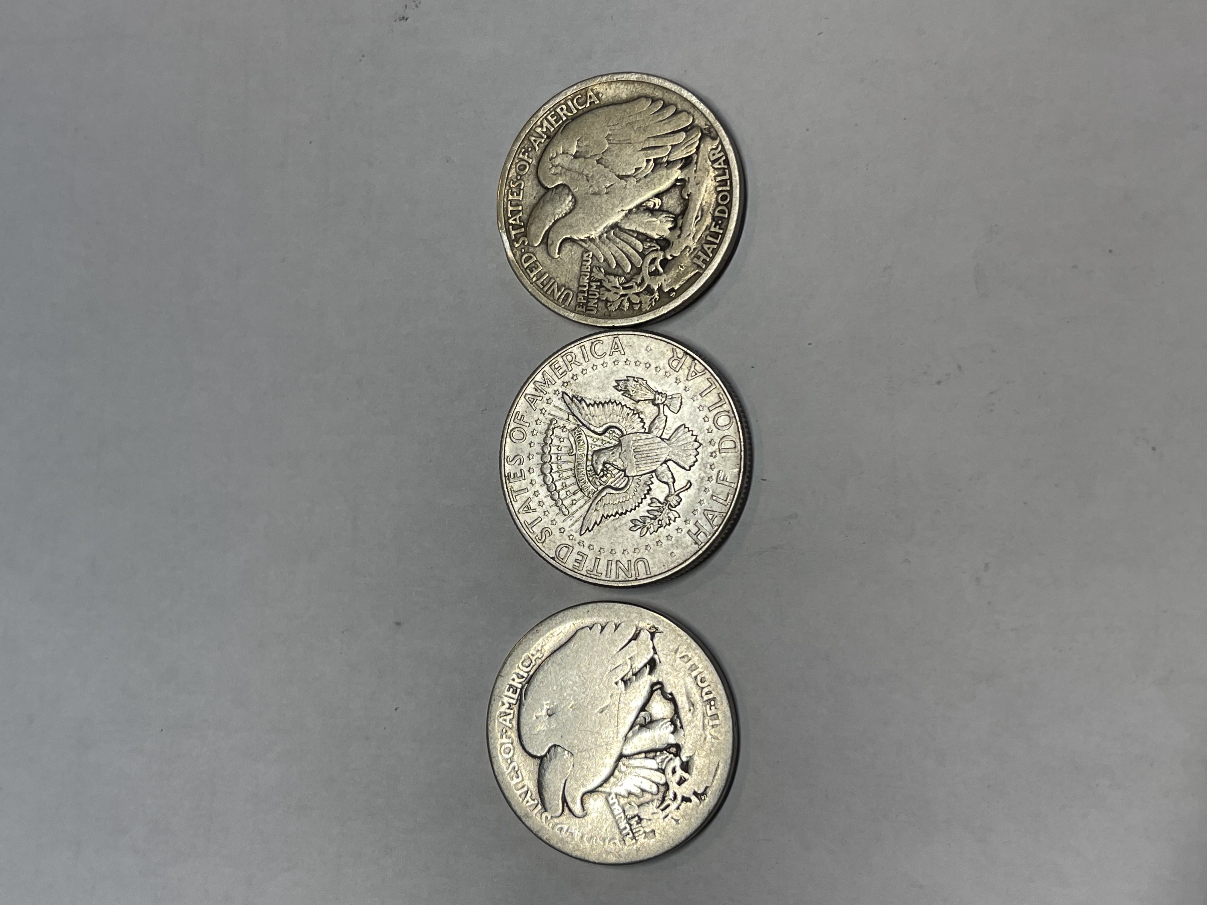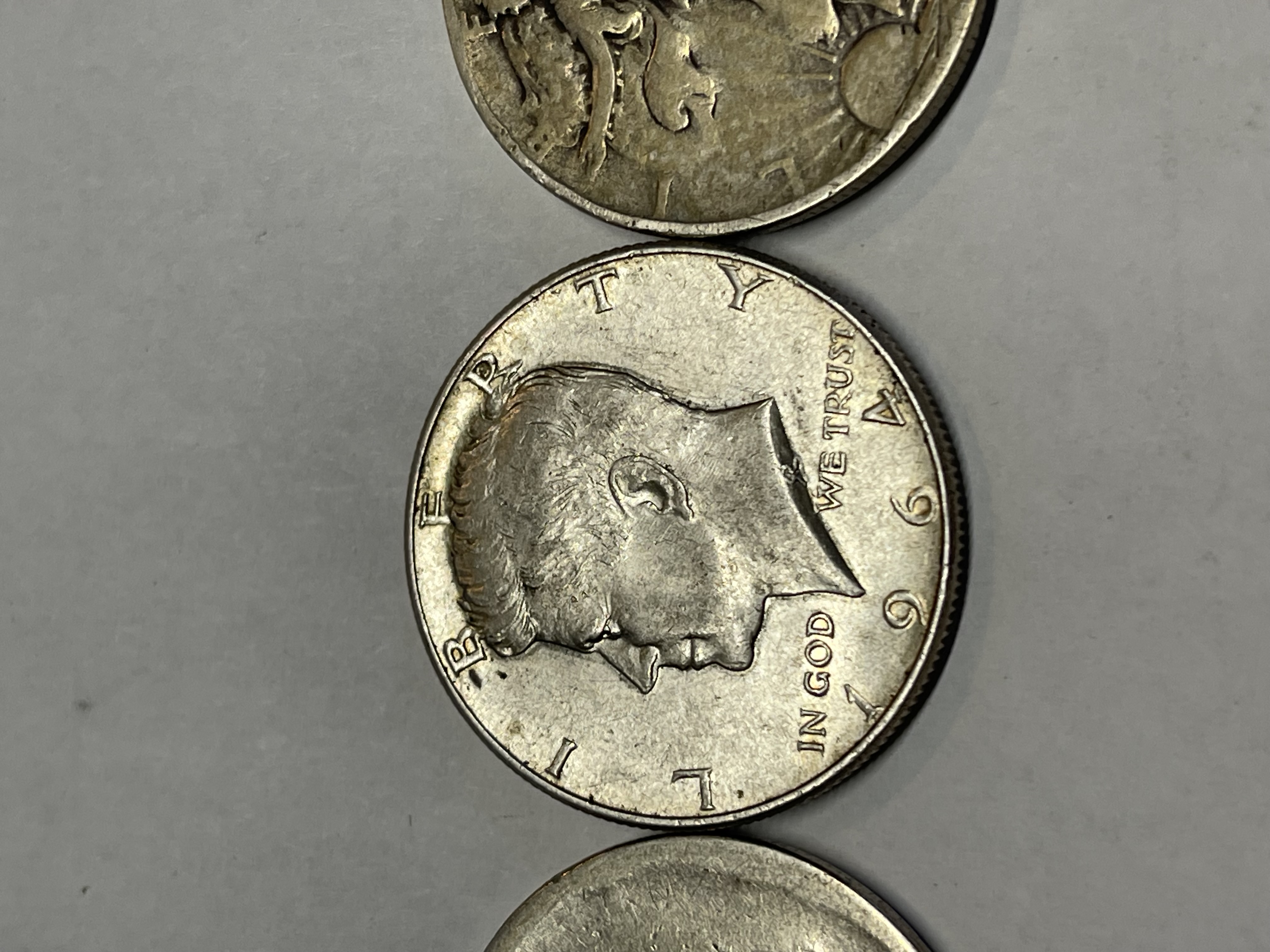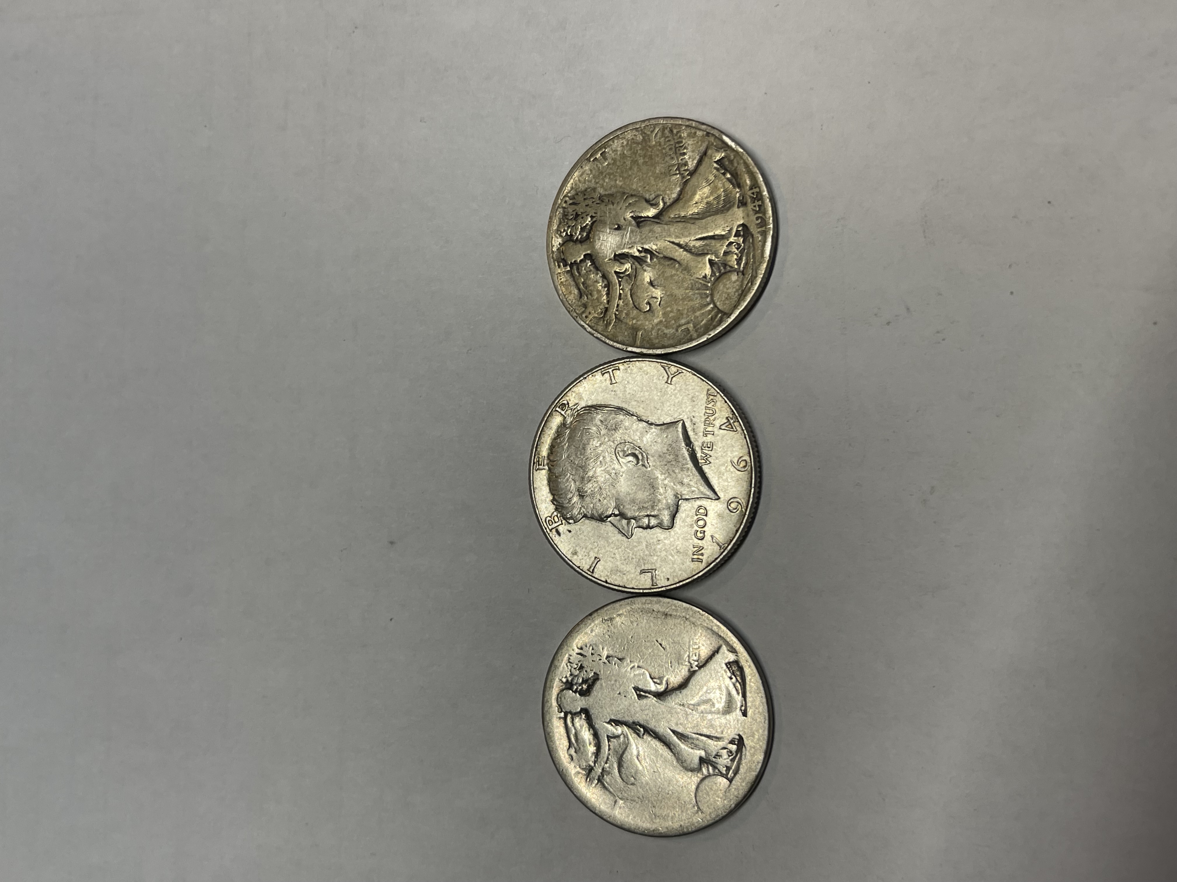 3 HALF DOLLARS ALL 90% SILVER 1944 1964 AND ONE UNREADABLE DATE SEE PICTURES FOR CONDITION
