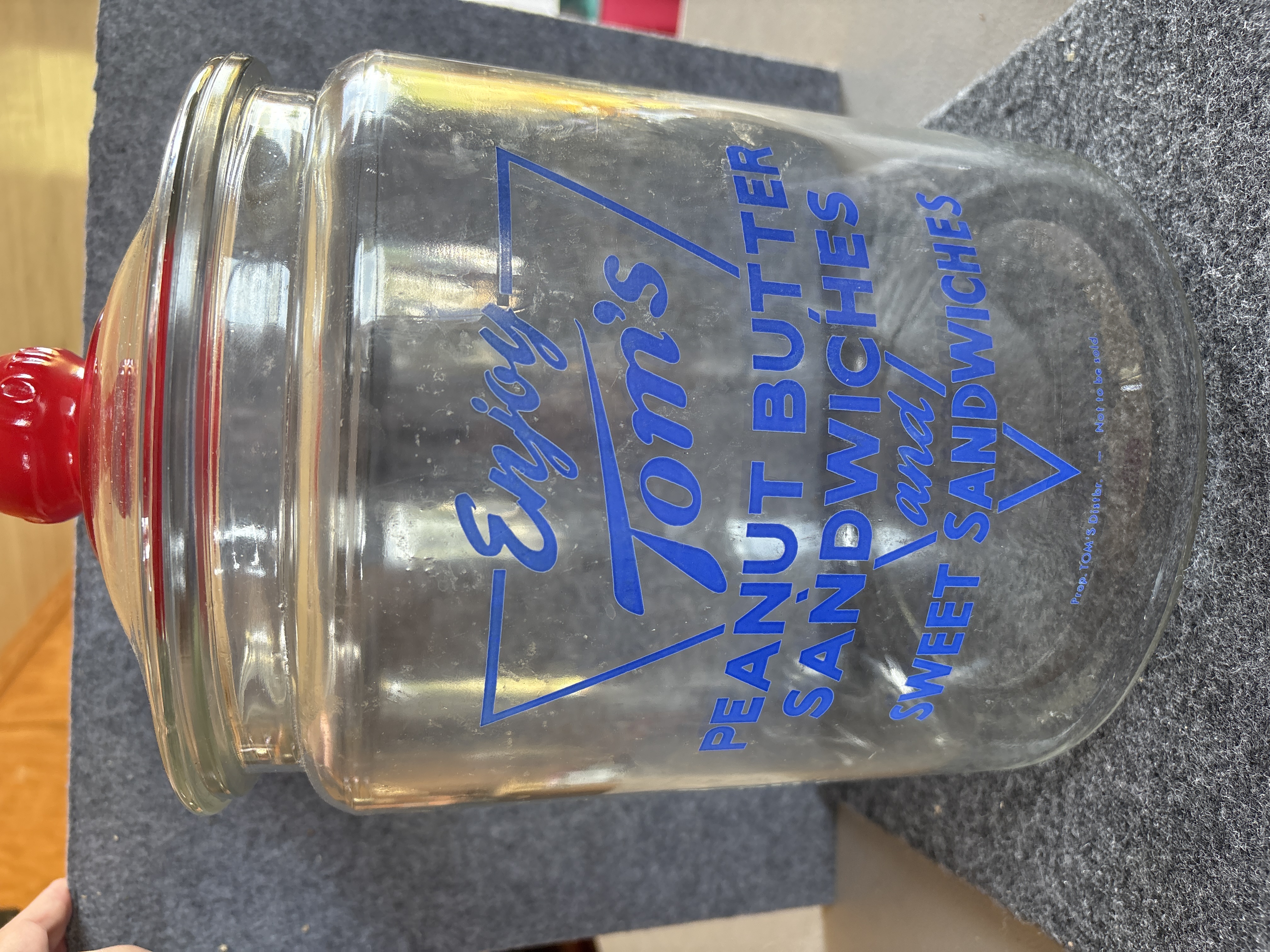 Vintage Tom's Peanut Butter Sandwiches Glass Store Display Jar
