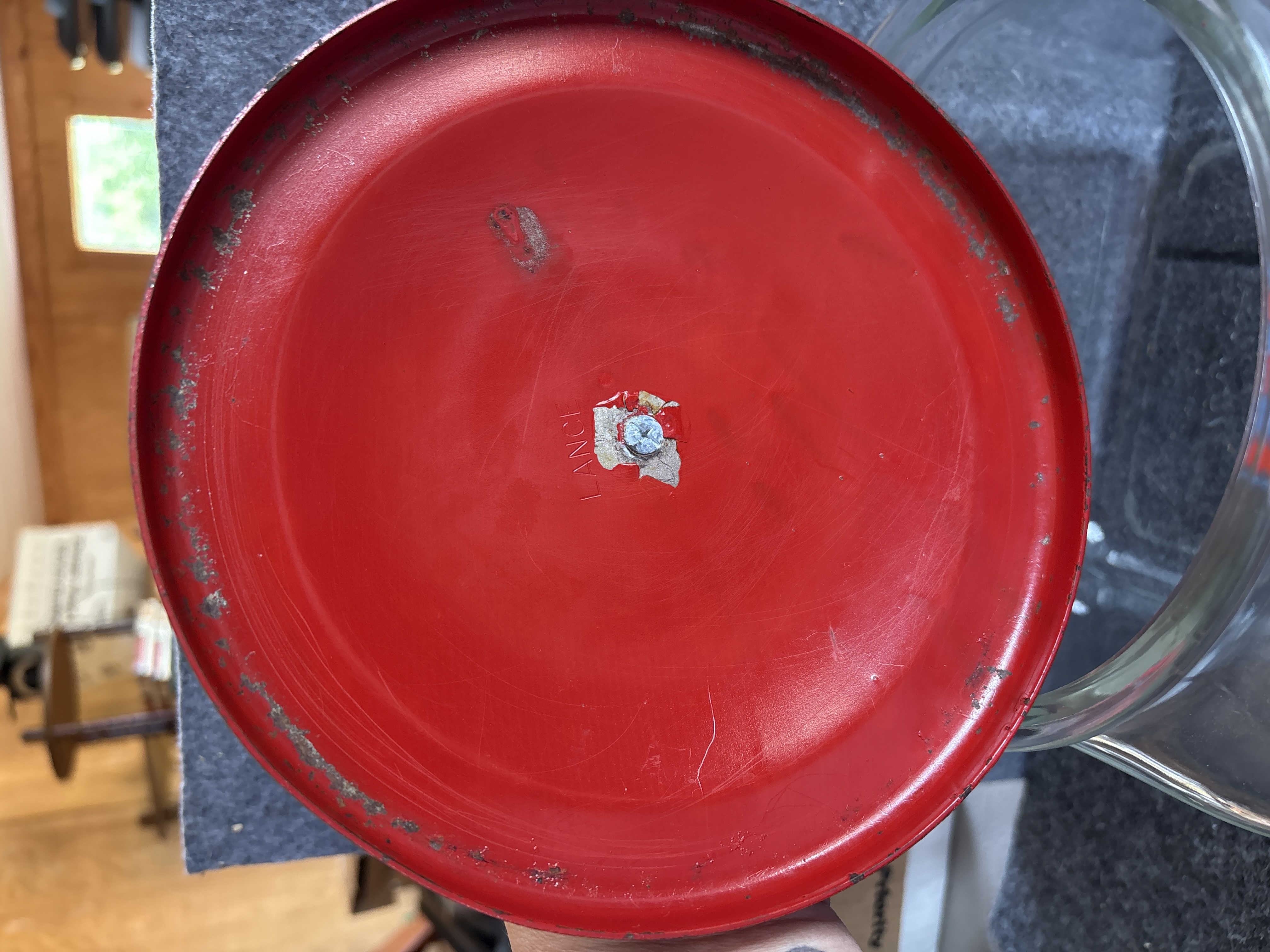Vintage Lance Glass Cracker Jar with Painted Metal Lid